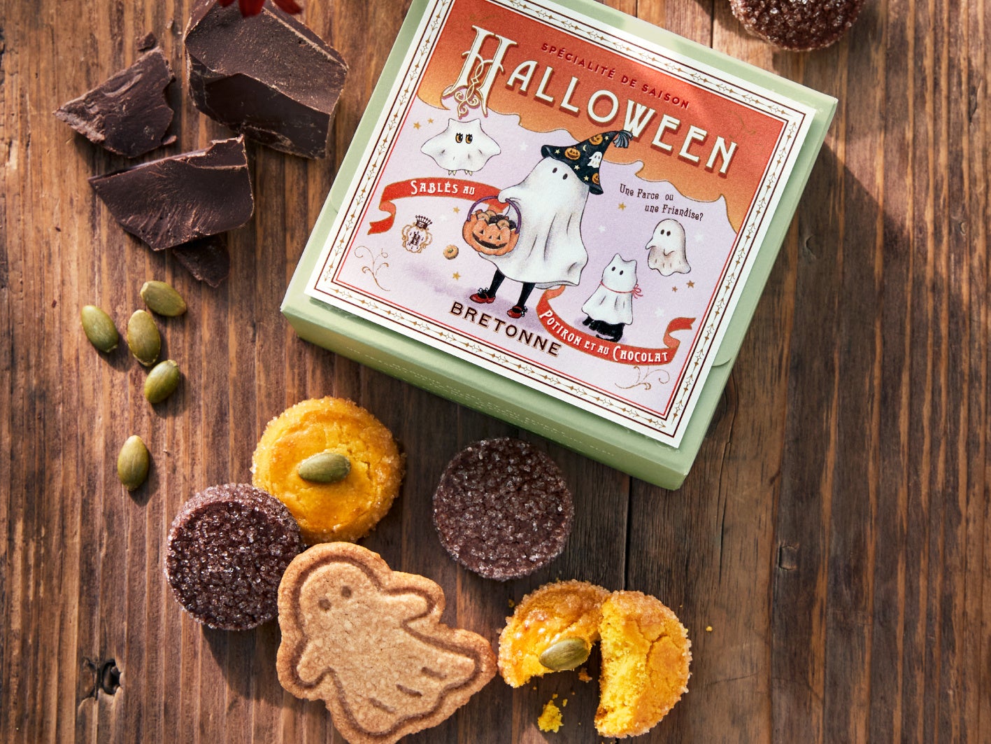 (https://www.bretonne-bis.com/) ではハロウィンシーズンに合わせて、ハロウィンパッケージのアソートギフトやハロウィンクッキー入りのサブレ小箱など、限定の商品を多数ご用意いたしました。