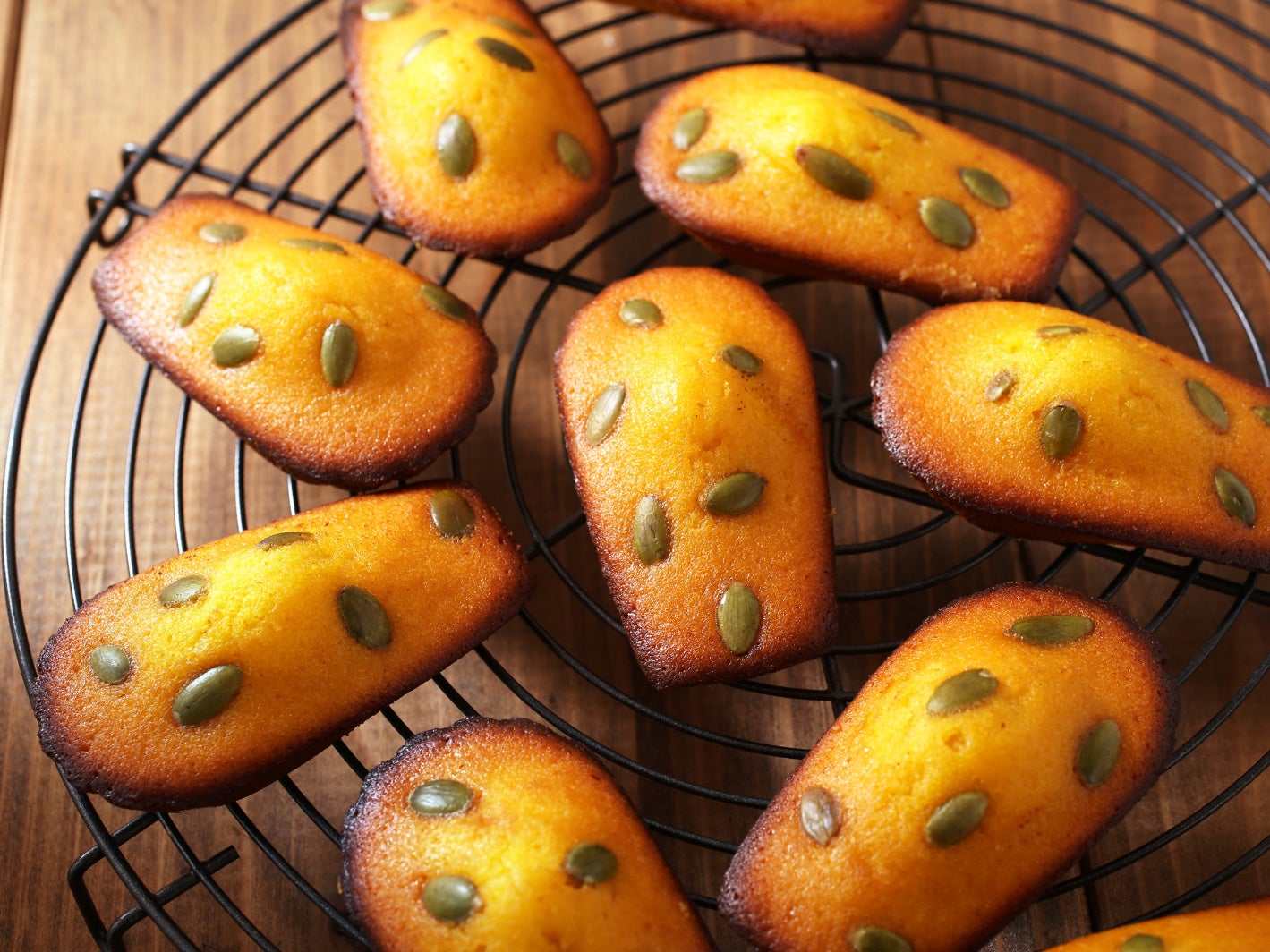 練乳の甘みを生かした優しい味わいの生地に、かぼちゃのペーストを加えて焼き上げたマドレーヌ。ほのかなレモンの香りとパンプキンシードの食感がアクセント。こっくりとしたかぼちゃの甘みが楽しめるハロウィン限定の美味しさです。