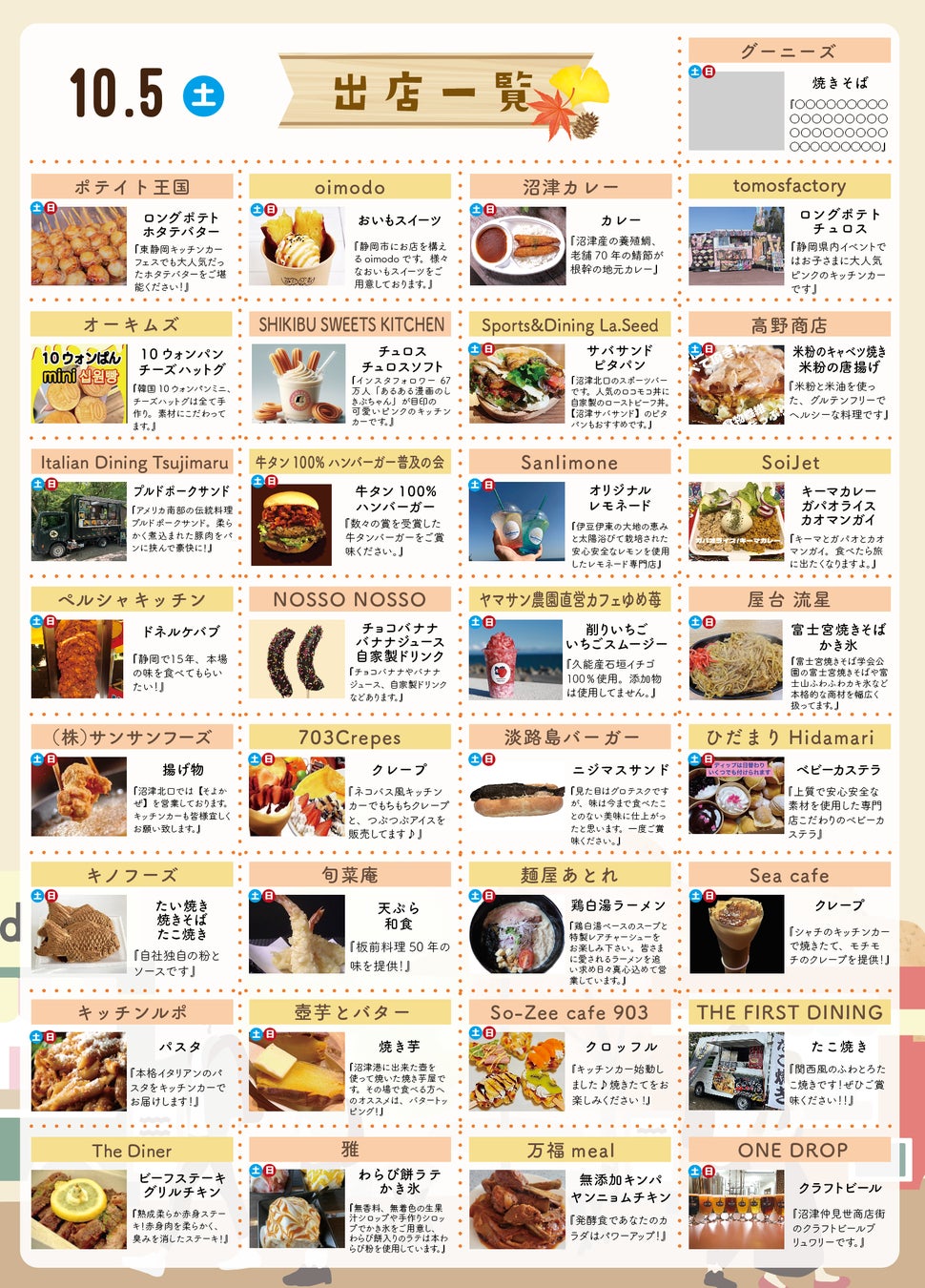 当日は、人気のキッチンカーが11台集結し、秋の味覚を堪能できる多彩なメニューを提供します。また、クラフトビールの特設ブースも設置され、ビール愛好家にはたまらないラインナップが揃います。