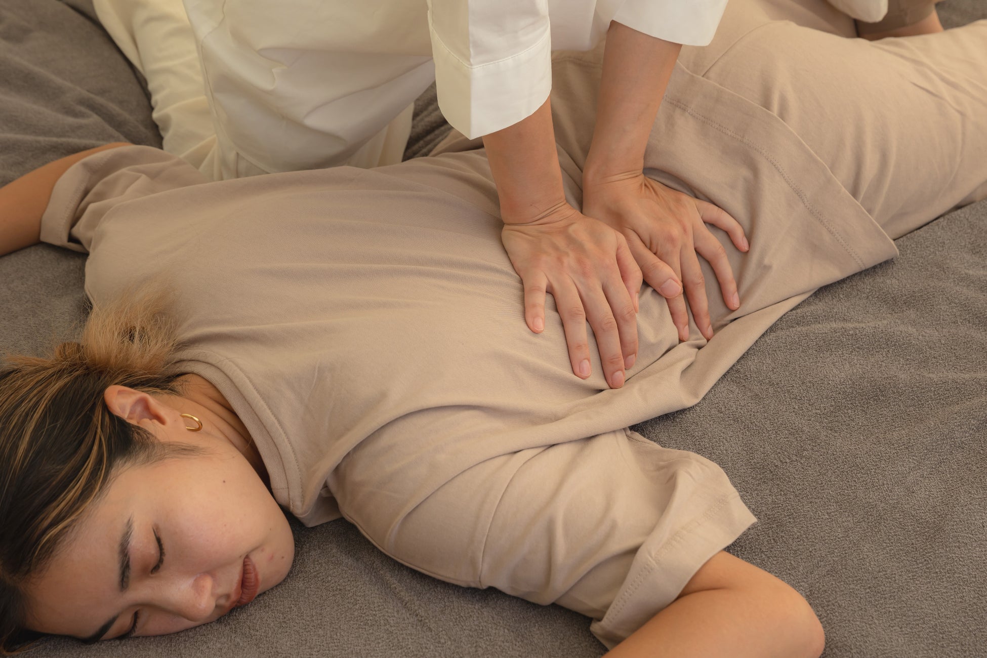 強めの圧によるオイル+ボディケア+フットリフレ+ドライヘッドスパで、体の芯までほぐす最強の組み合わせ。