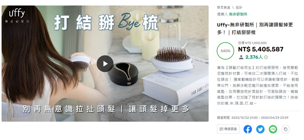 今回の製品は独自のデザインと機能性を融合させ新開発したヘアブラシとなっている。開発元の台湾ではクラウドファンディングを実施し、大きな反響を呼んでいます。
