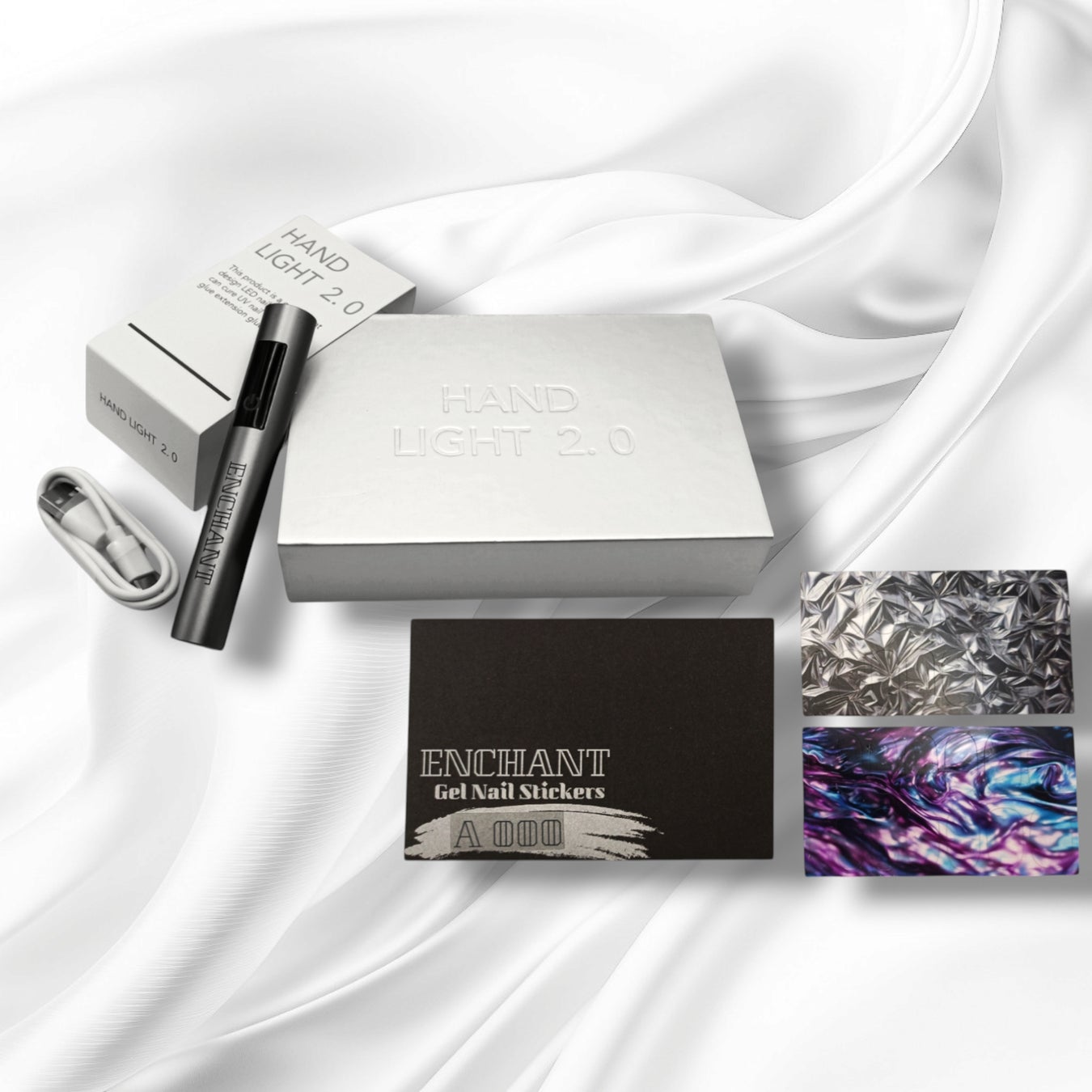 Gel Nail Stickersのお好きなデザイン・爪のタイプ1セットと、Hand Lightのお得なセット。