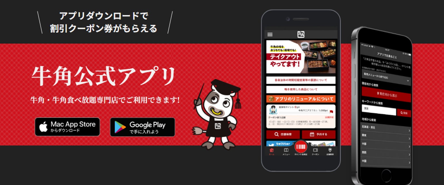 ・牛角公式アプリ会員限定のクーポンとなります。お会計時にアプリのクーポン画面をご提示ください。