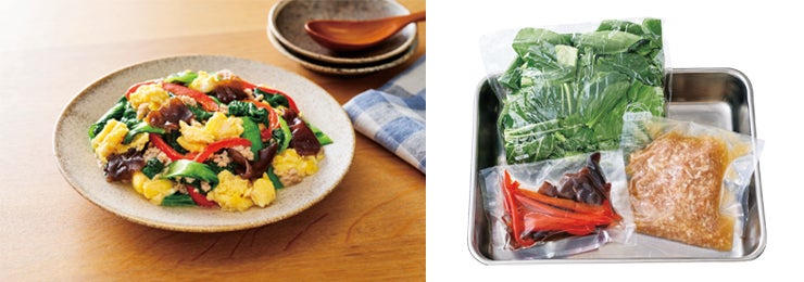 提案の中心となる「お料理セット」は、カット済み野菜と、肉や魚介のたんぱく質、たれがセットされているので、添付のレシピを参照すれば料理初心者でもバランスの良い食事が用意できます。国産の肉や野菜、オリジナル商品の調味料などの食材を使い、最短5分で1品が完成するので、平日の仕事帰りの夕食づくりの簡便さと、食の安心の両方がかないます。