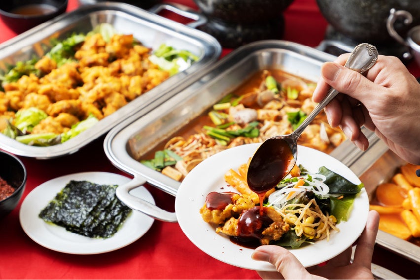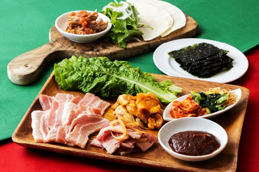 韓国グルメは定番のスンドゥブやトッポギ、香ばしく焼いた豚バラ肉をサンチュや薬味と楽しむサムギョプサルセットなどをご用意。