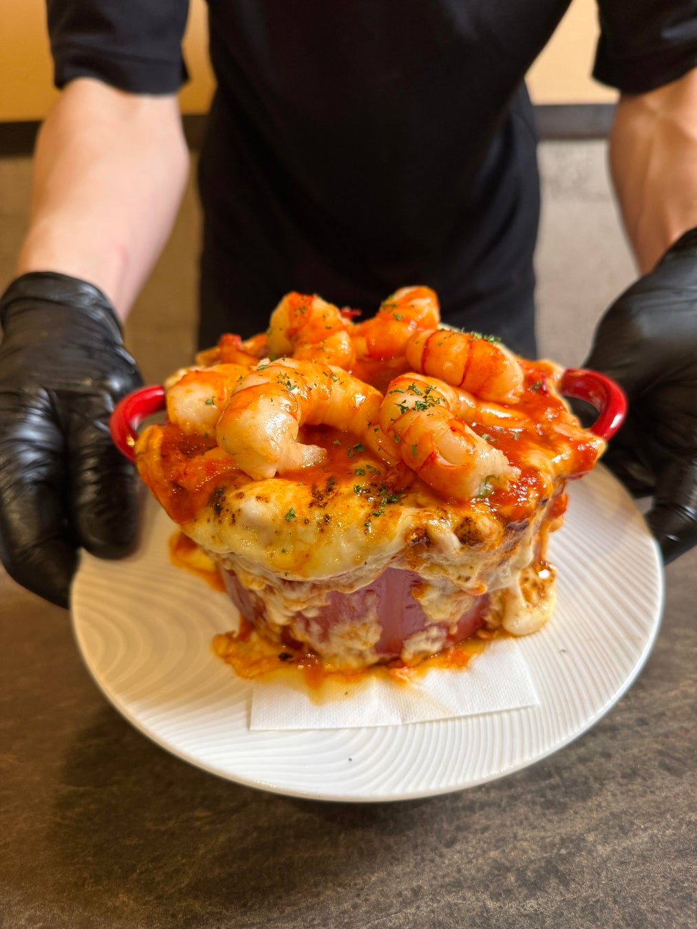 まるでエビとチーズが噴火しているかのようなビジュアルは、、まさに‘‘食べる火山‘‘。