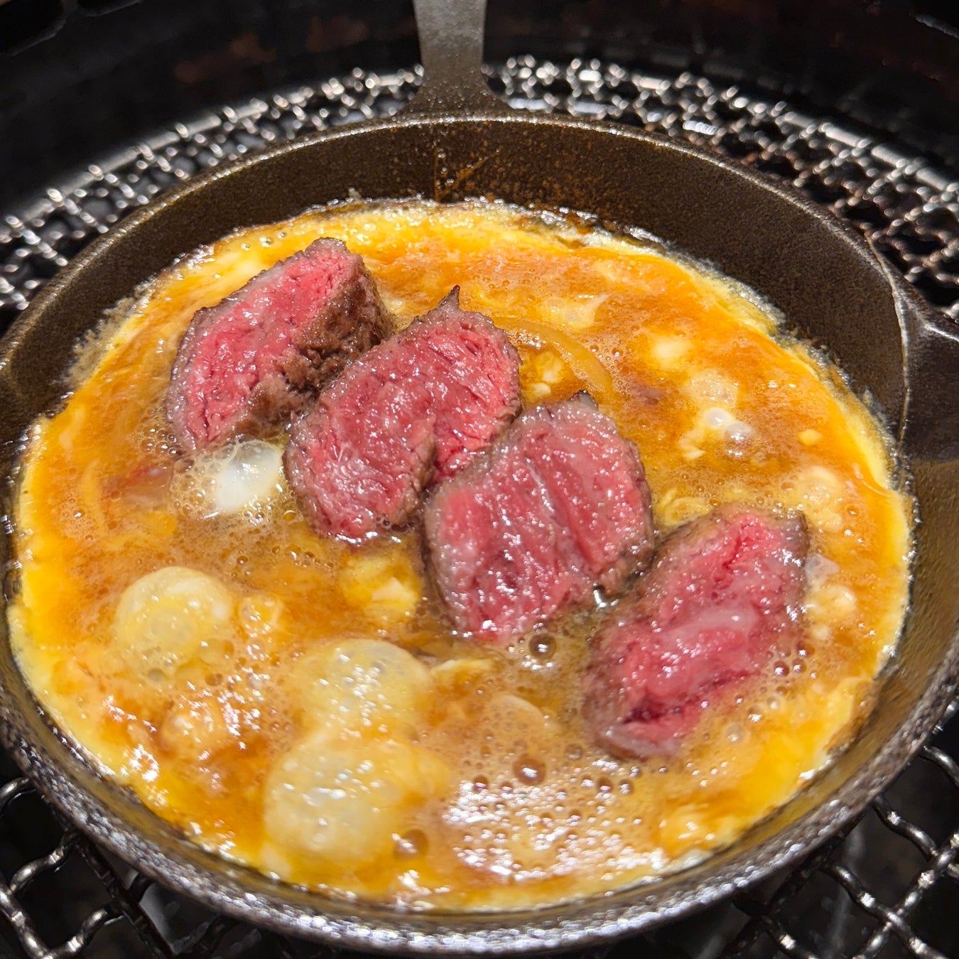 焼肉よいんの持つ独自の仕入れルートにより、質の良いお肉をリーズナブルに楽しむことができます。分厚い赤身肉を使用した「赤身ステーキ卵とじ」は、その柔らかさに驚くはずです。