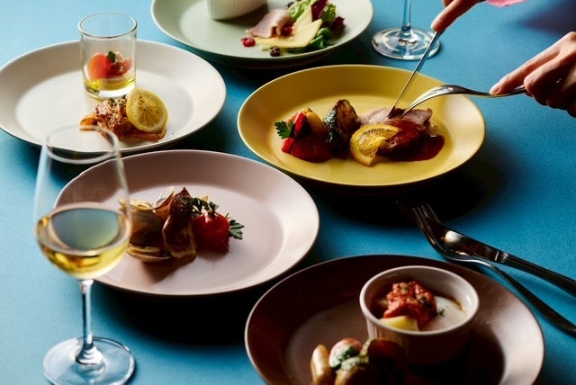 さわやかな柑橘やハーブがポイントの温菜・冷菜や、ホールのまま提供する美しいデザートなど夏メニューは約20種。