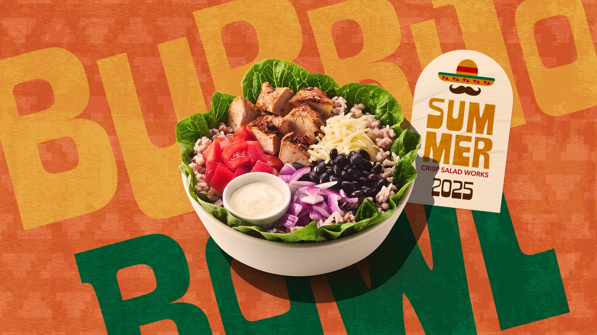 「ブリトーをそのままサラダにしたら?」というユニークな発想から生まれた、クリスプ夏の風物詩「ブリトーボウル」。今回特別に増量したグリルドチキンに、ブラックビーンズ、ワイルドライスを組み合わせた味わいは、まさにアメリカ南西部の本格的なテイスト。シャキシャキとしたロメインレタスや、フレッシュなトマト、レッドオニオンが全体のバランスを整え、濃厚なバターミルクランチドレッシングが全ての具材をクリーミーにまとめ上げます。