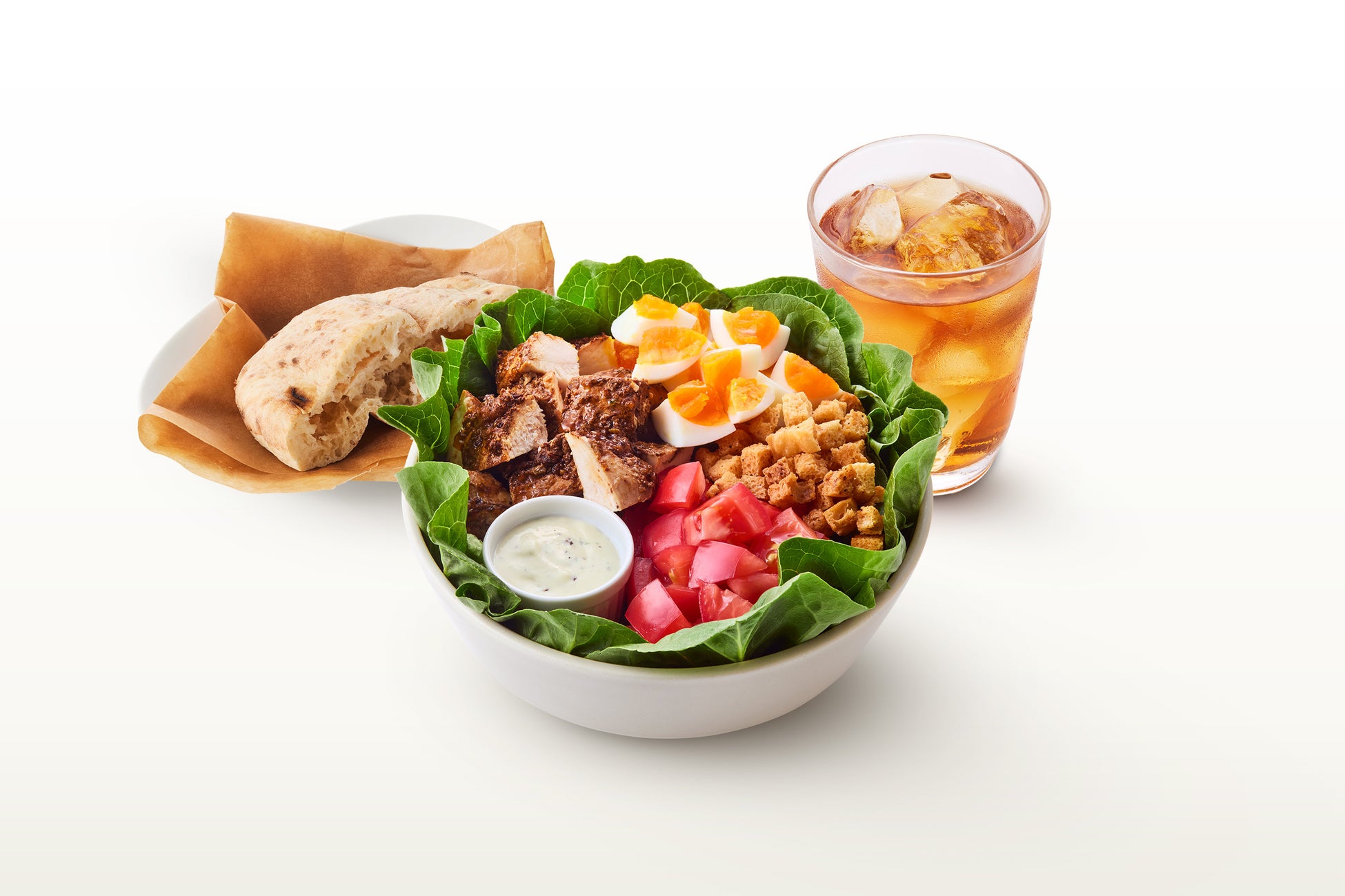 「サラダで満足できるの?」って思ってる方にこそ試してほしい王道サラダ。グリルドチキンのタンパク質とボイルドエッグのまろやかさ、自家製クルトンのザクザク感、そしてロメインレタスのシャキシャキ食感が絶妙にマッチ。クリーミーなバターミルクランチが全体をまとめて、食感も味も大満足。誰でも楽しめる、まさに間違いない組み合わせ!