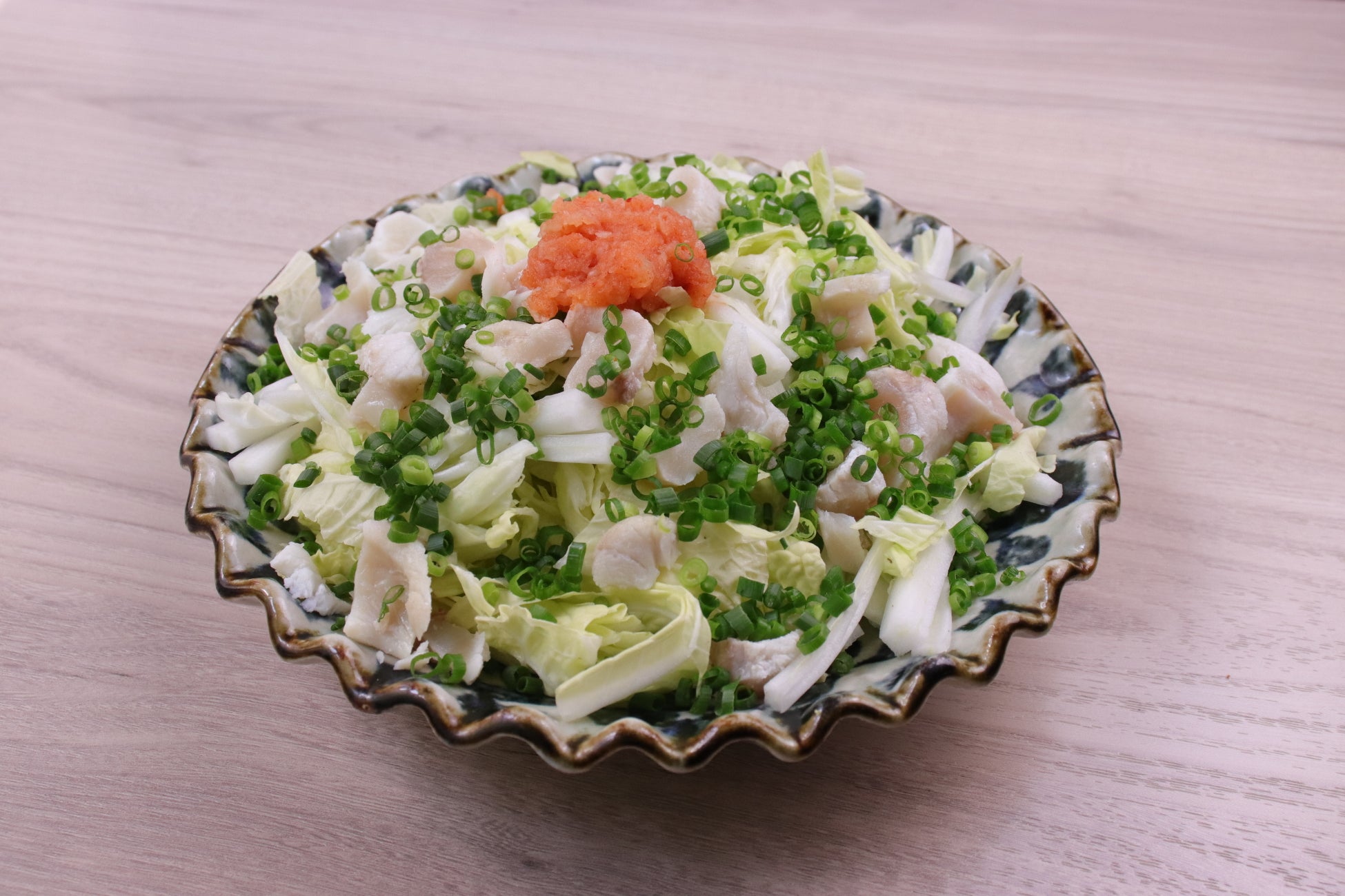 前菜にうってつけの最⾼級品質の⻑崎県産⼾⽯トラフグをたっぷりと使用したサラダ。