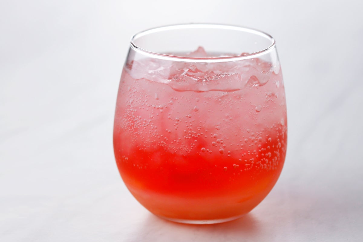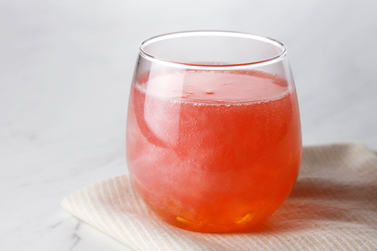 ピーチシロップ・ピーチジュレ・ハイビスカスティを炭酸で楽しむ夏限定のドリンク。