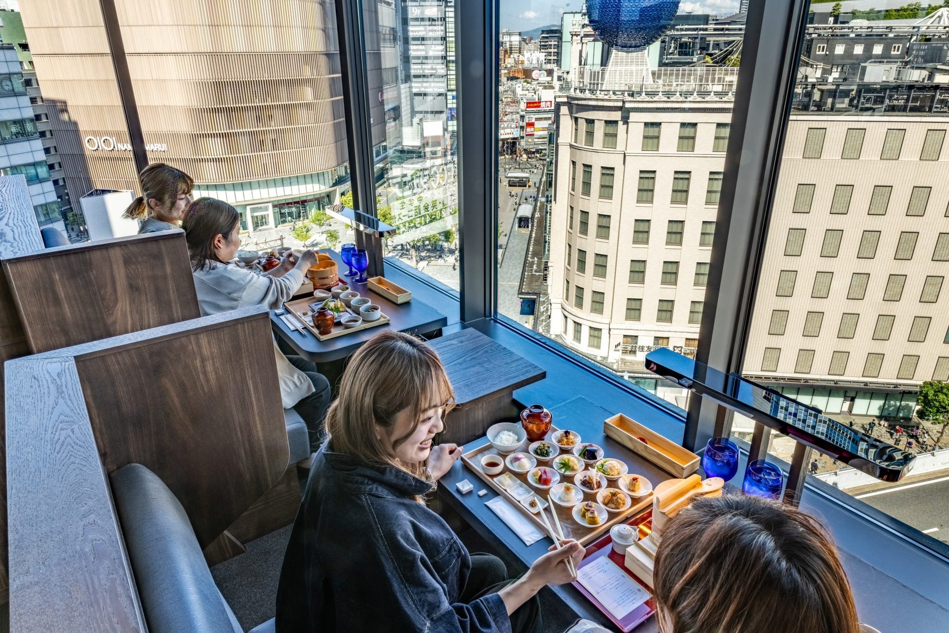 店内は全席から難波のパノラマの眺望をお楽しみ頂けるレイアウトになっており、“2名専用和食店”として多くのお客様にご好評いただいております。