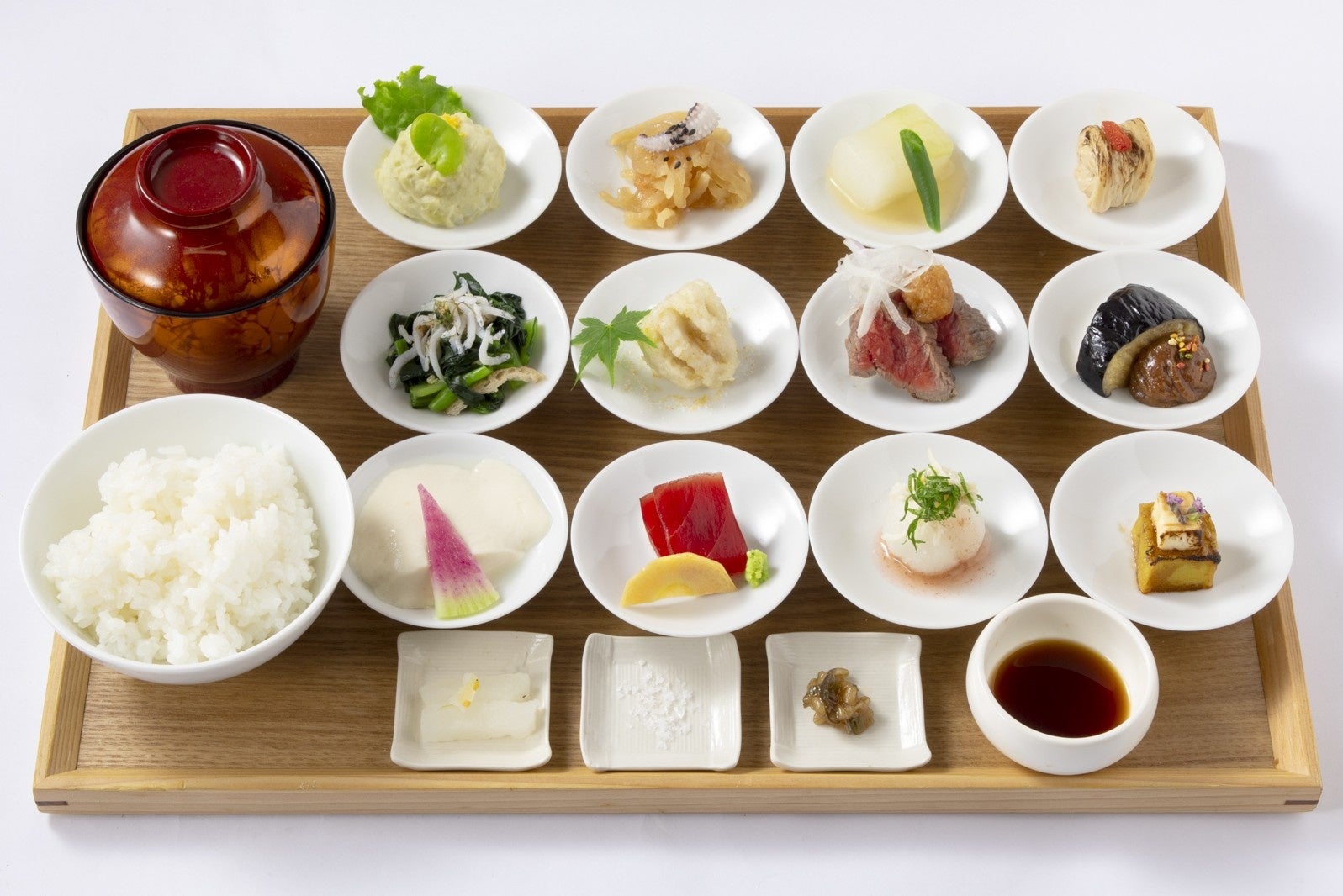 ランチでは和食の基本「一汁三菜」をベースに、手造りすくい生とうふ、季節の旬菜4種、銀シャリご飯、大源味噌のお味噌汁などが付いた「メインが選べる一汁六菜ランチ」や「一汁十二菜ランチ」をご用意。