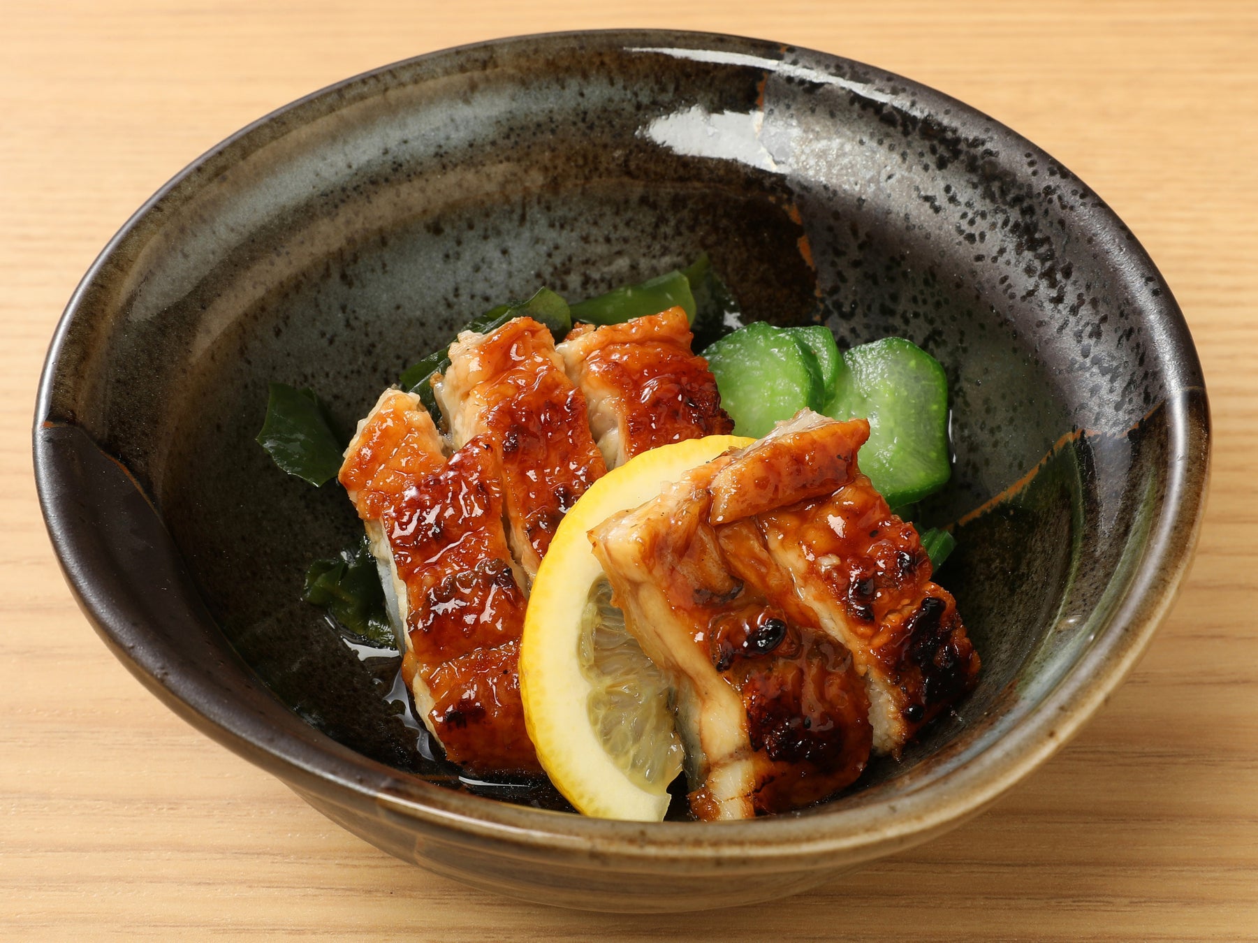 鰻の蒲焼と塩もみしたきゅうり。夏の季節にぴったりの爽やかな一品です。