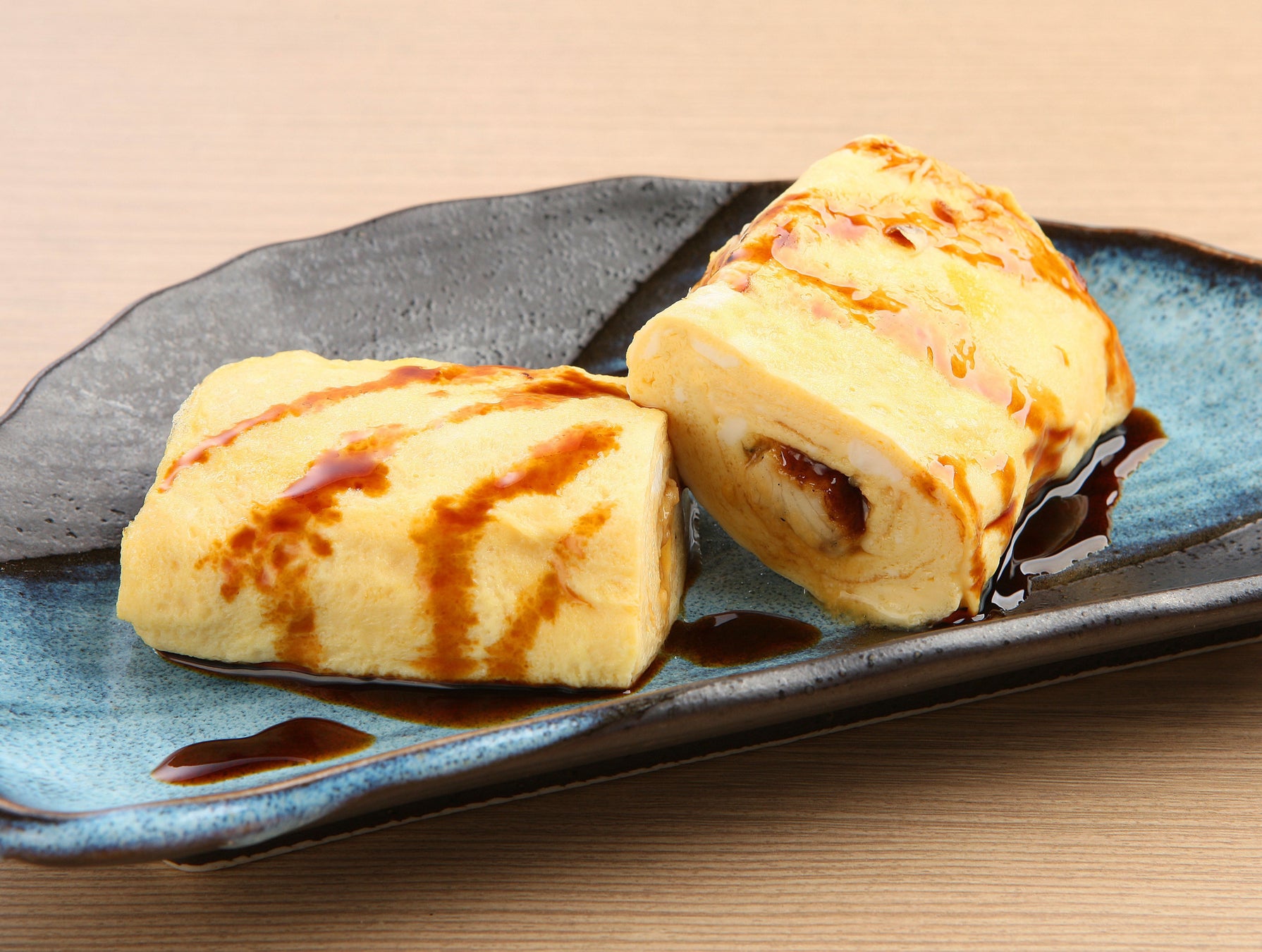 おらが蕎麦で人気のだし巻き卵。この夏メニューでは、だし巻き卵の中に鰻の蒲焼を巻き込みました。鰻の濃厚な味わいでさらに美味しさが広がります。ぜひお召し上がりいただきたい一品です。