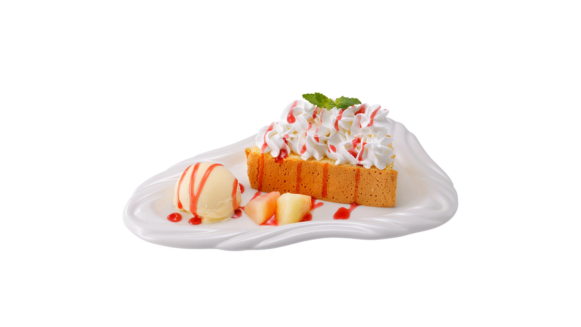 ふわふわでしっとりとしたシフォンケーキに爽やかなピーチソースをあしらい、バニラアイスと白桃のシロップ漬けを添えた、上品なケーキデザートです。びっくりドンキーこだわりのコーヒーと一緒に味わえるセットもお選びいただけます。