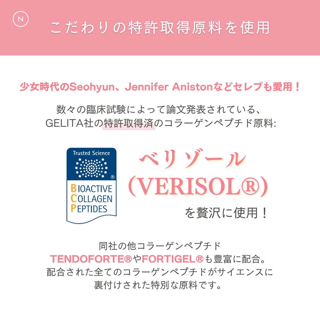 セレブも愛用するGelita社(ドイツ)の特許取得コラーゲン原料を使用