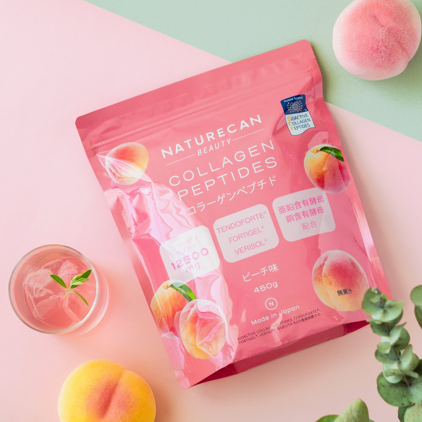 特許取得済原料を使用したNaturecanのコラーゲンペプチドに、爽やかなピーチ味が仲間入り!