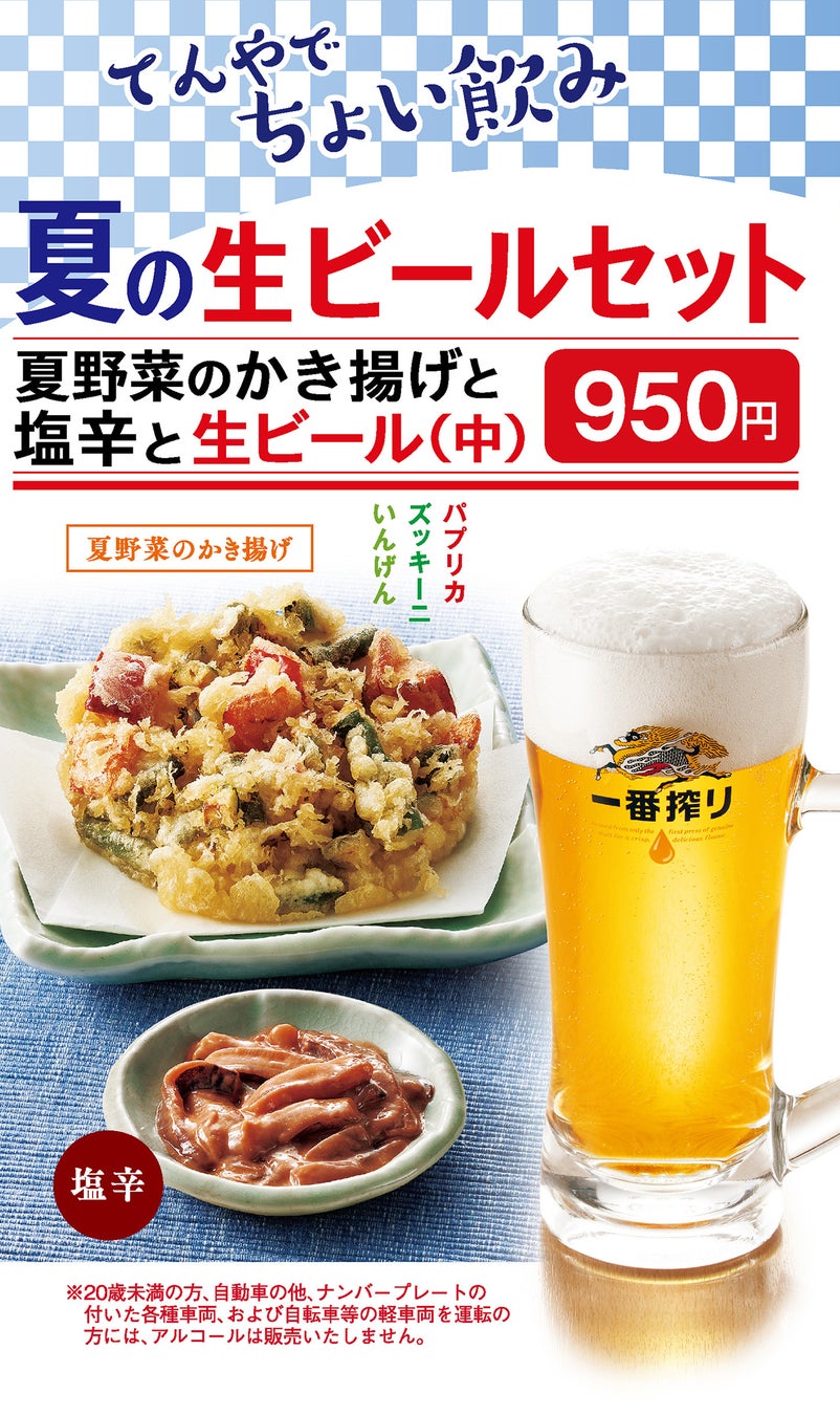 6月12日(木)より夏野菜のかき揚げとお酒がセットになった『夏の生ビールセット』の販売をスタート!