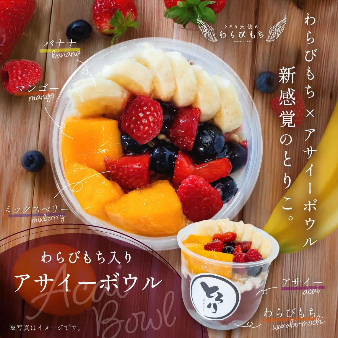 全国にとろり天使のわらびもちを展開する「とろり天使のわらびもち株式会社」は、ヘルシーご褒美な『わらびもち入りアサイーボウル』を期間限定で販売致します。