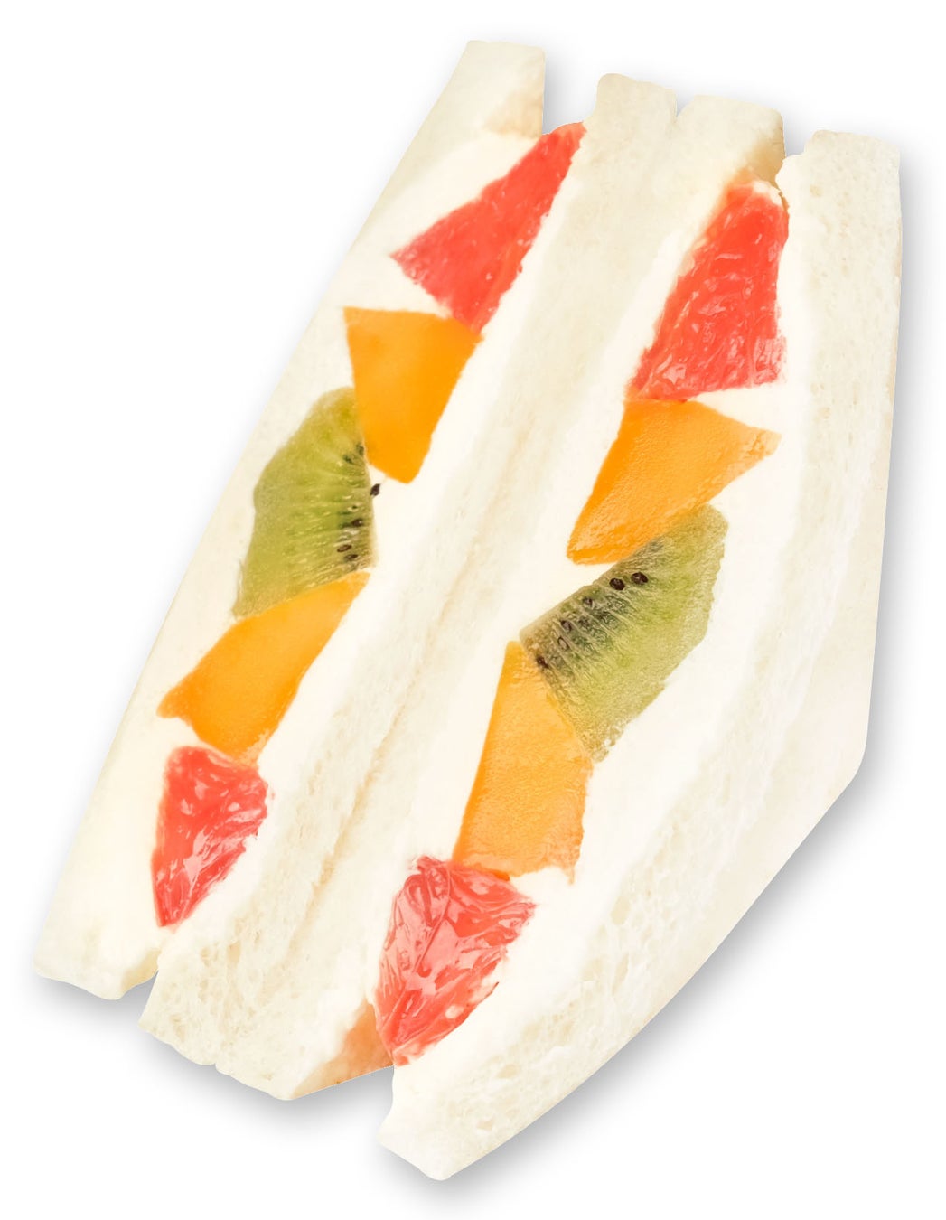 アップルマンゴーに、爽やかな酸味のグレープフルーツとキウイを合わせた、夏にぴったりのフルーツサンド。生クリームが果実の味わいを引き立て、ひと口ごとにジューシーな美味しさが広がります。カラフルで華やかな、季節限定のごほうびサンドです。