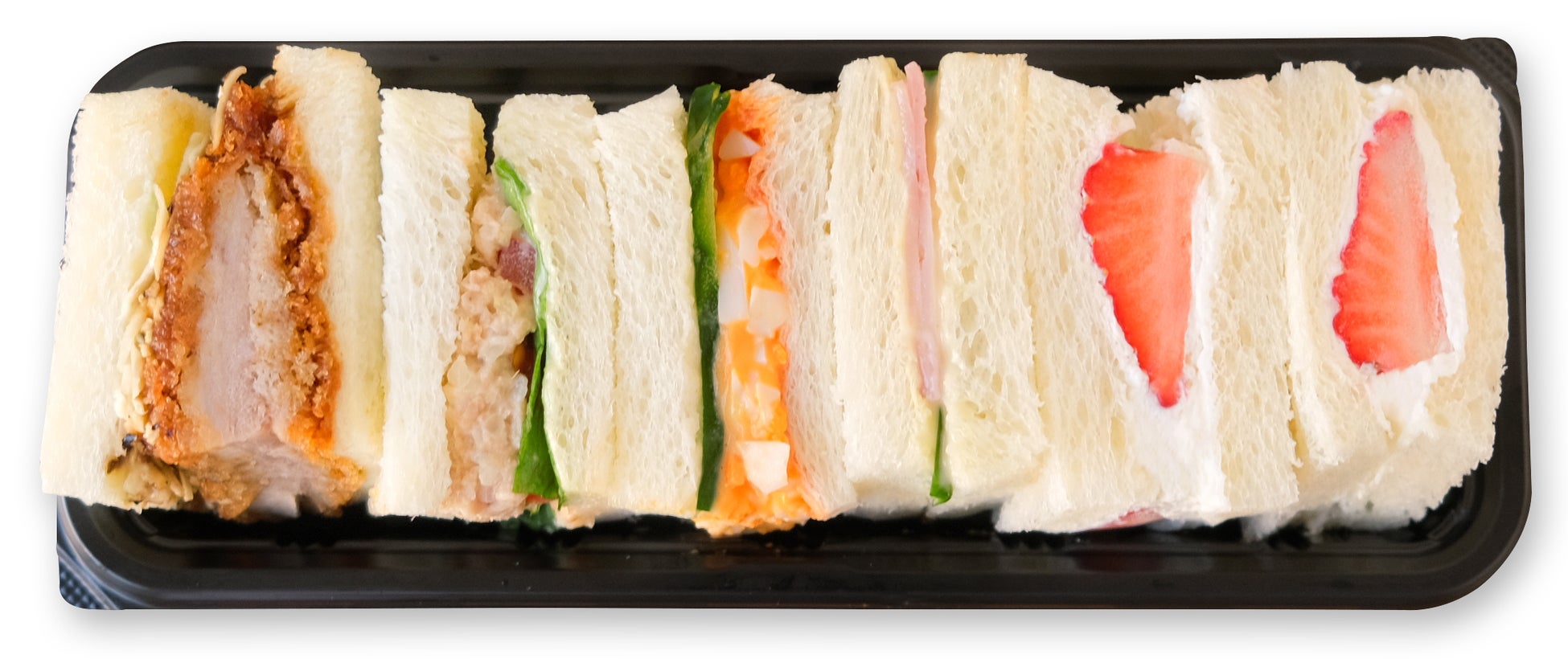 人気のサンドイッチ5種をぎゅっと詰め込んだ、欲張りなボックスサンド。定番のたまご・ハム・ツナに、食べごたえ満点のカツサンド、デザート感覚のいちごの生クリームサンド。朝食やランチはもちろん、シェアにもぴったりな満足セットです。