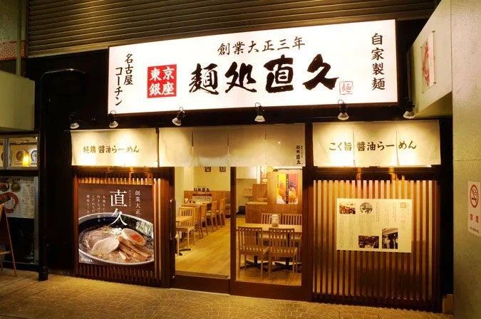 創業後、昭和42年(1967年)、「本場の味らーめん直久」として1号店を東京銀座に出店し、当時から行列を絶やさないほど人気を誇った老舗らーめん店です。