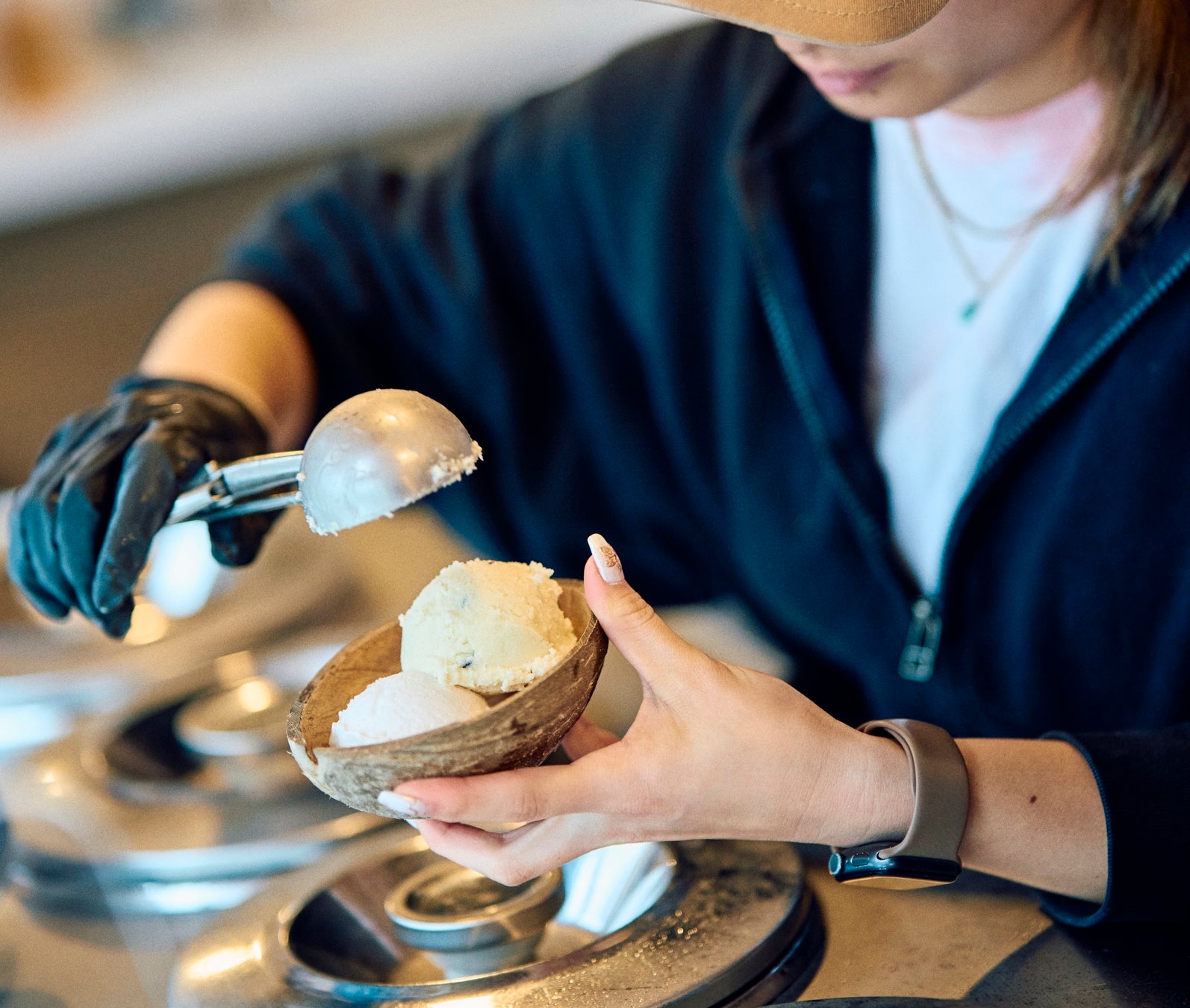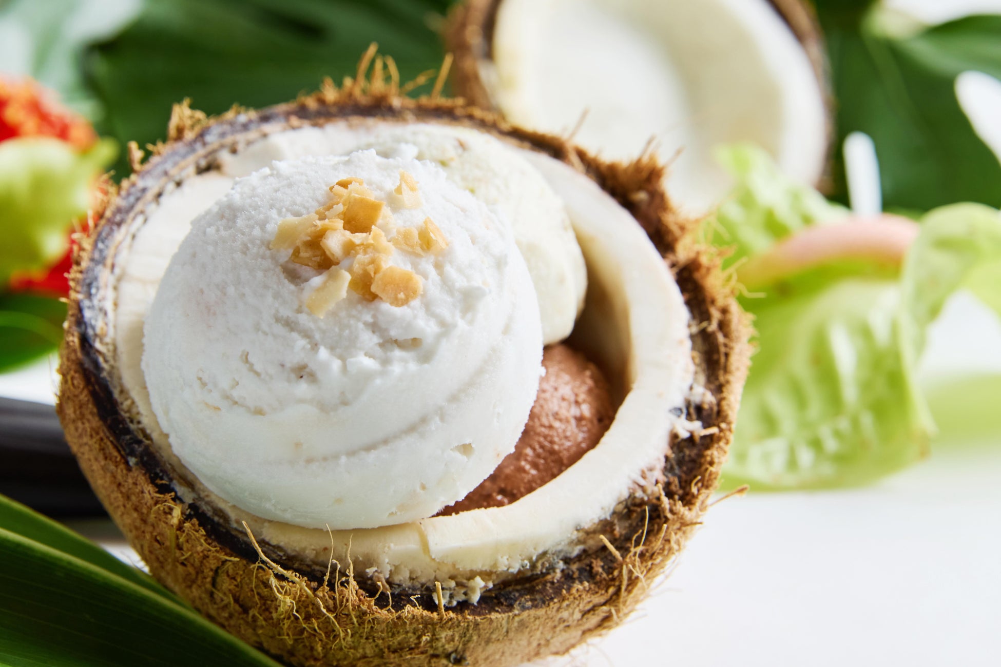 マウイ本店と同様に、ご注文いただいたアイスクリームをココナッツシェル(ココナッツの殻)に盛り付けてご提供いたします。見た目も味わいもハワイの雰囲気を感じていただけます。