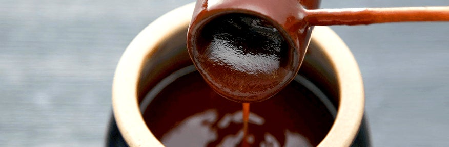 ソース まい泉では現在、甘口・辛口・サンド用・黒豚用の4種類のソースを製造しています。基本的なレシピは創業当時のまま、新鮮な野菜や果物を材料に、創業者のこだわりを受け継いだ熟練の職人が丁寧に味を確認しながら調合しています。