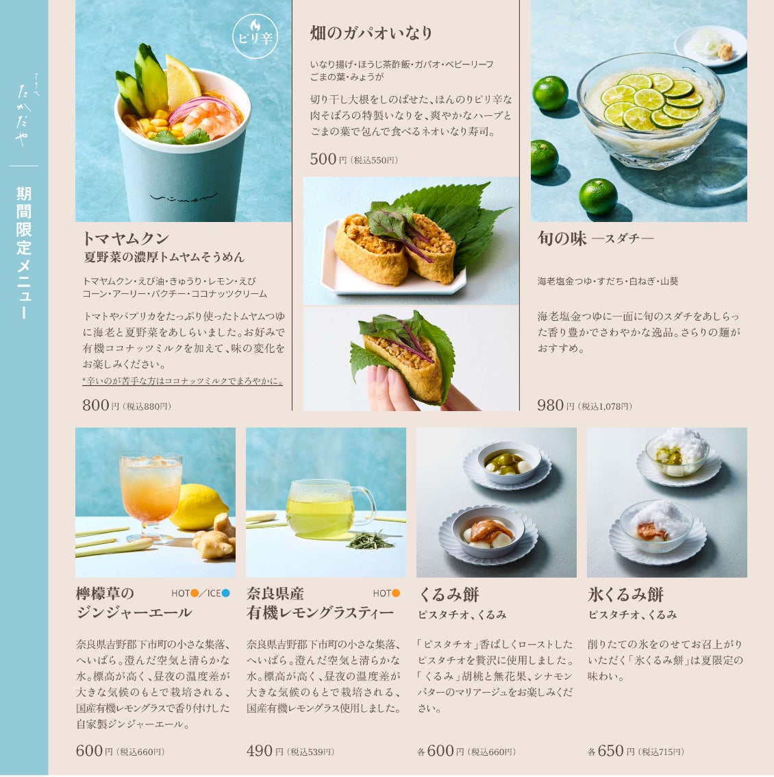 ・「てのべたかだや」の期間限定メニュー