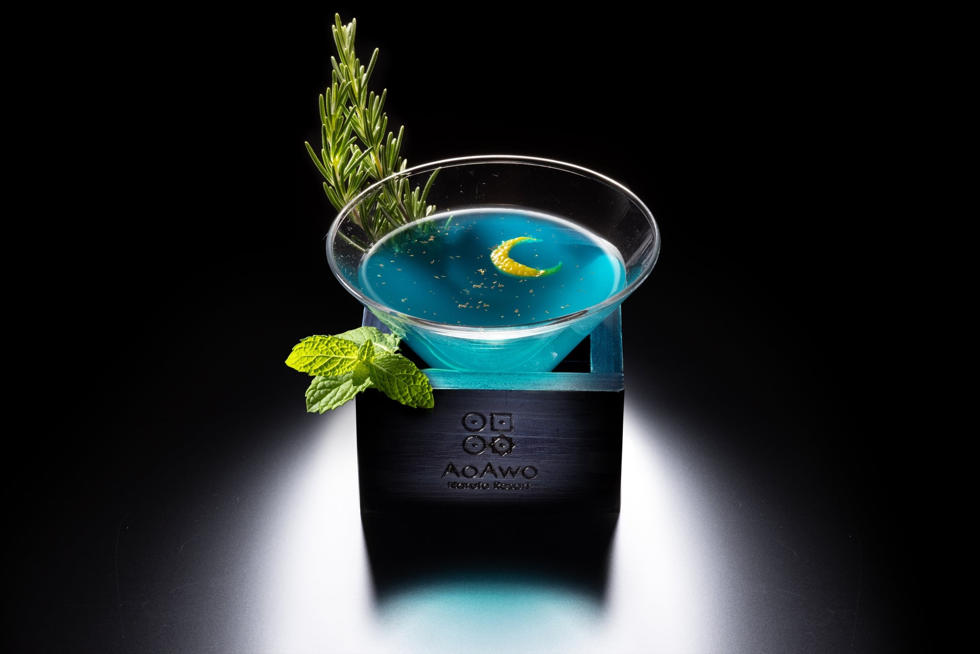 また、ゴッホ作品の中でも人気が高い「星月夜」をモチーフにしたカクテルは、ゴッホが愛したアブサンとミントリキュールベースで幻想的なイメージを再現。ブルーキュラソーの夜空に煌めく星を金箔で表現し、柚子ピールの三日月を浮かべました。きらめく海や月光が映し出すムーンロードを望む絶景カフェでお愉しみください。