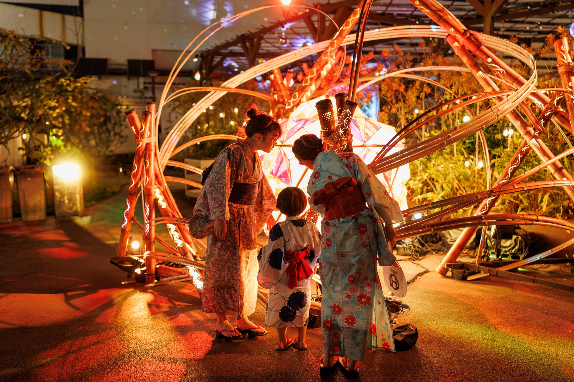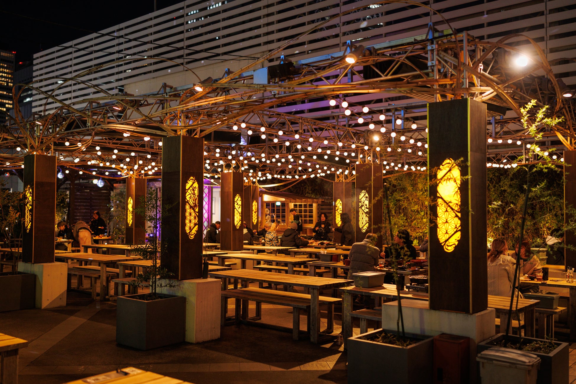 巨大な光のオブジェやフォトブース、料理は日本の様々な都市や郷土料理からインスパイアされたBBQメニューと共に世界のビールを飲み放題でお楽しみいただけるビアガーデンです。