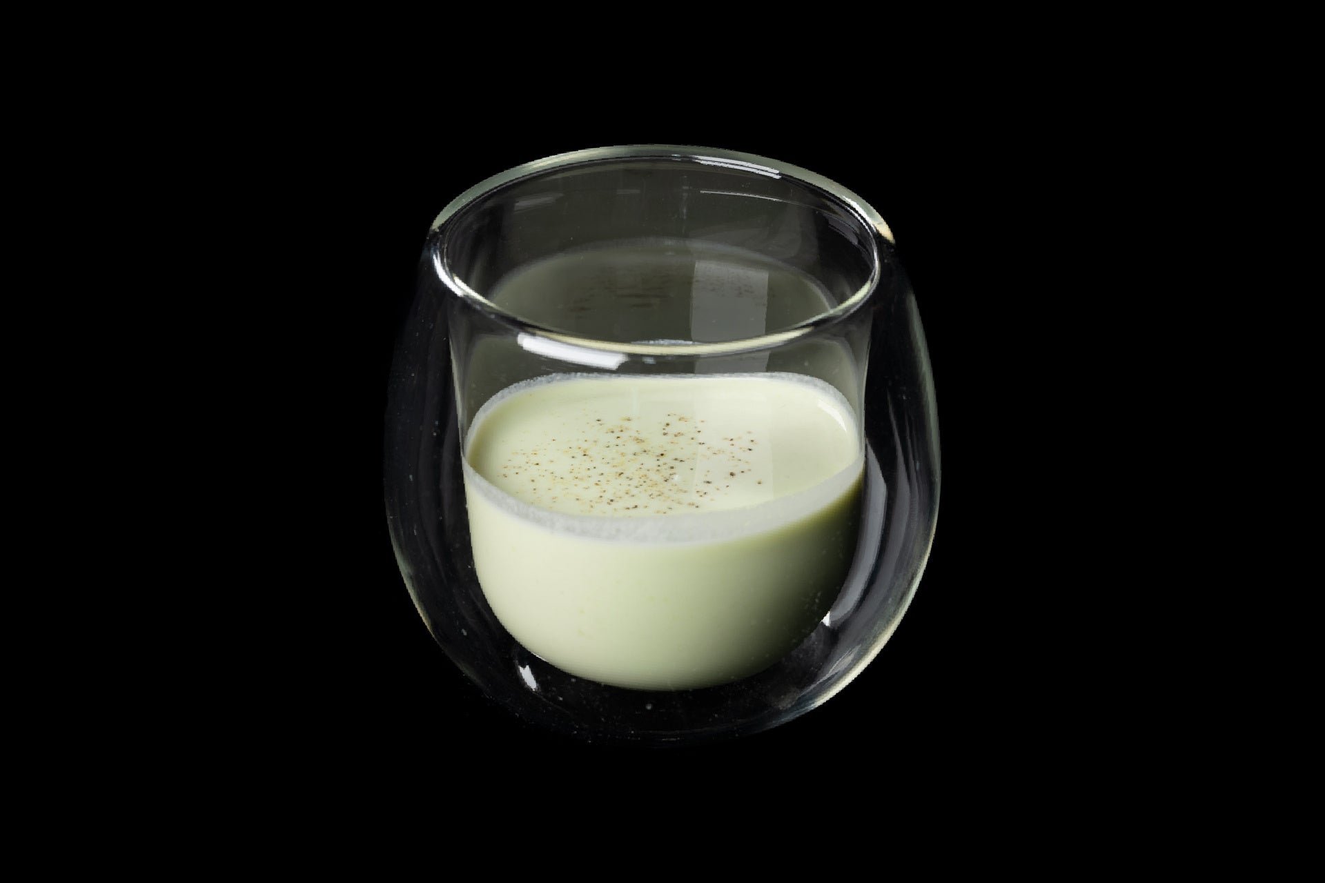 隠し味にホワイトポートリキュールを加えることで、軽やかなクリーム感の後味にすっきりとした余韻をもたせています。少し舌に残る、とろみを湛えた枝豆の口当たりが、ひんやりとした味わいに静かな厚みを添える一品です。