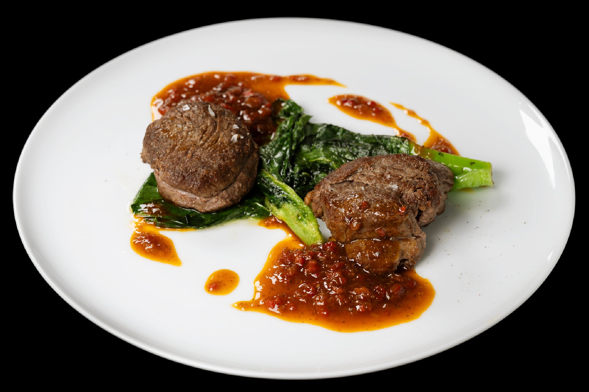 NZ産牛フィレ肉のステーキ 赤パプリカソース