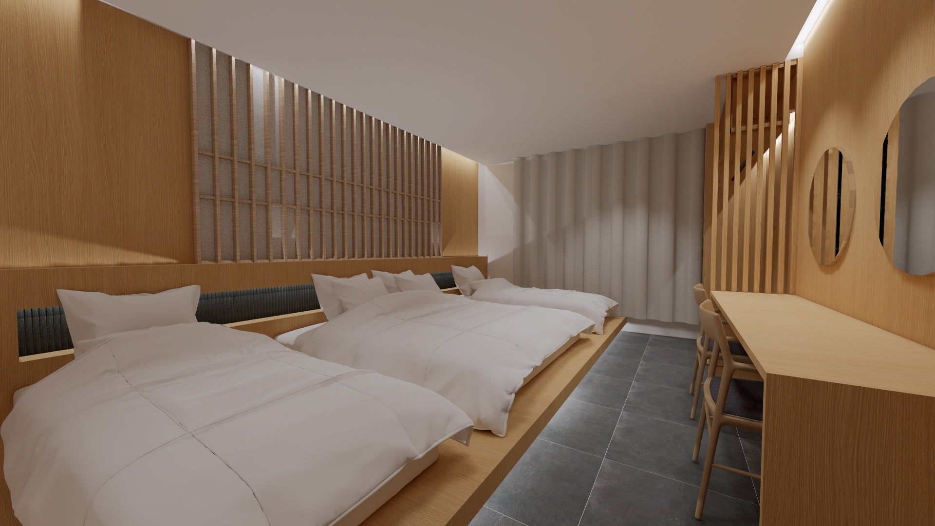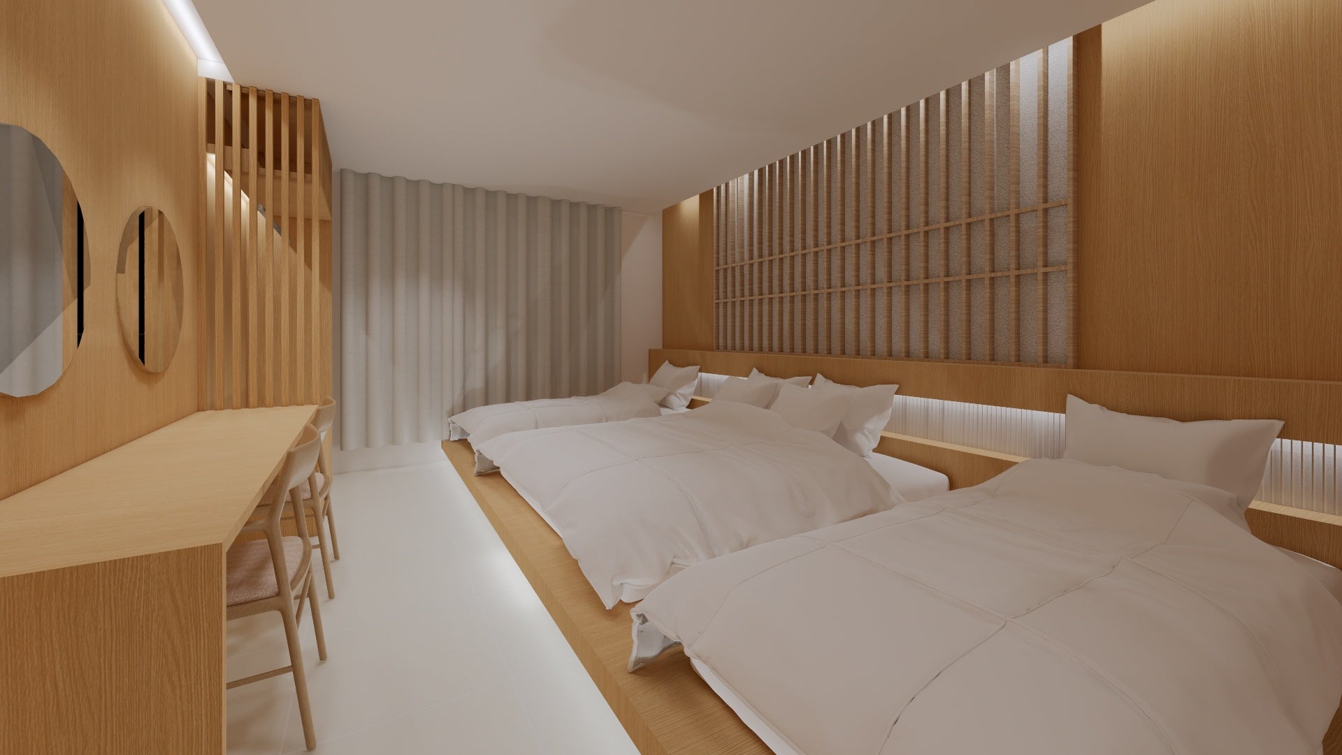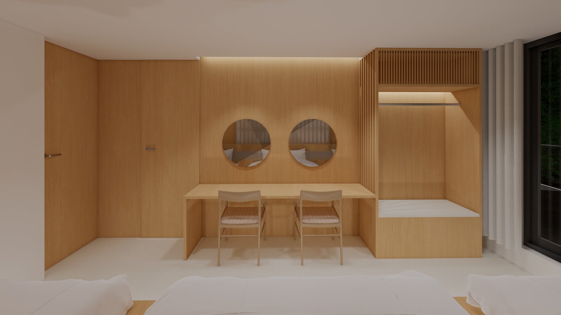 都会の喧騒から解き放たれた“静穏”をテーマに、最大8名まで宿泊可能な完全プライベート空間です。最大天井高5mを誇る坪庭付きの象徴的なバルコニーを備え、各所に障子のモチーフを取り入れた、黒と木目のコントラストが印象的な和モダンデザインを採用。豊かな自然と和の美を融合させた贅沢なひと時をご提供します。音・光・香りにまでこだわり、全ての空間が五感を刺激し、日常から離れるための“余白”を大切にしています。