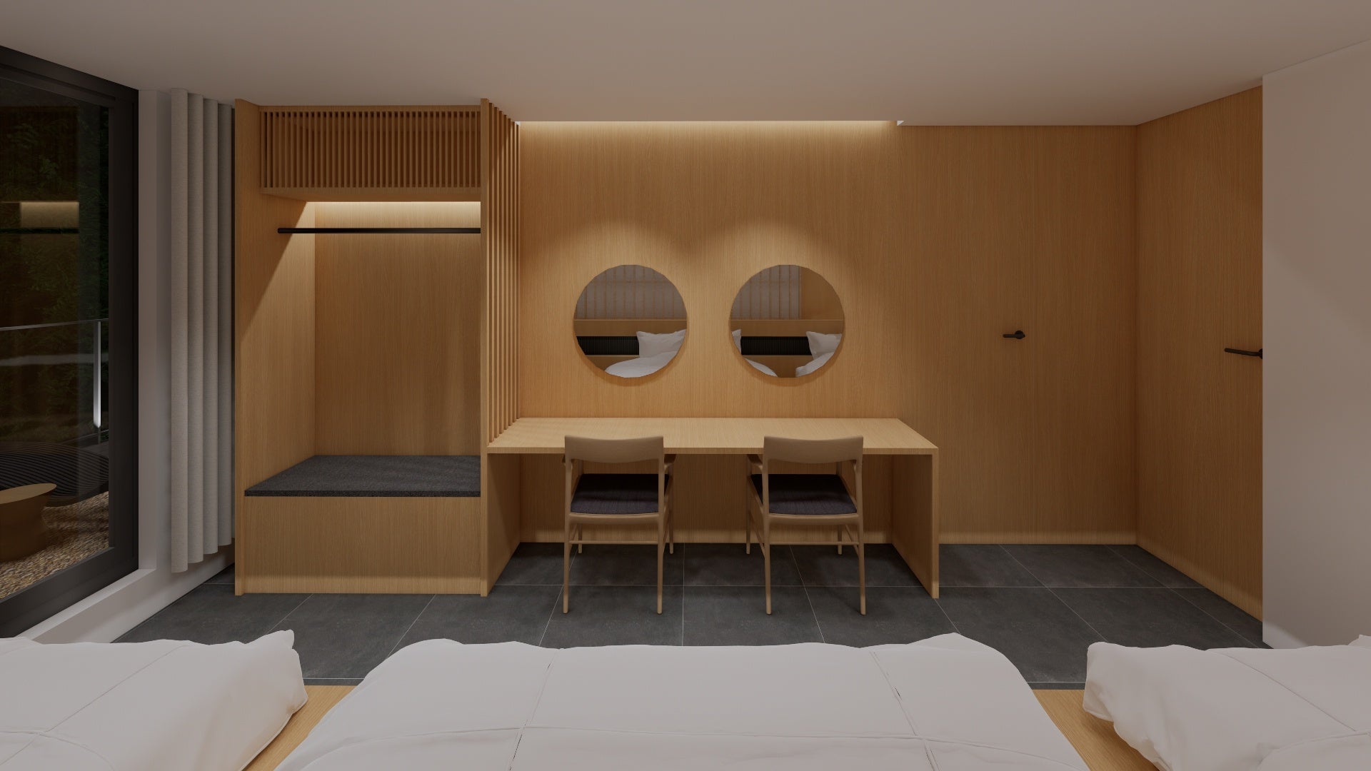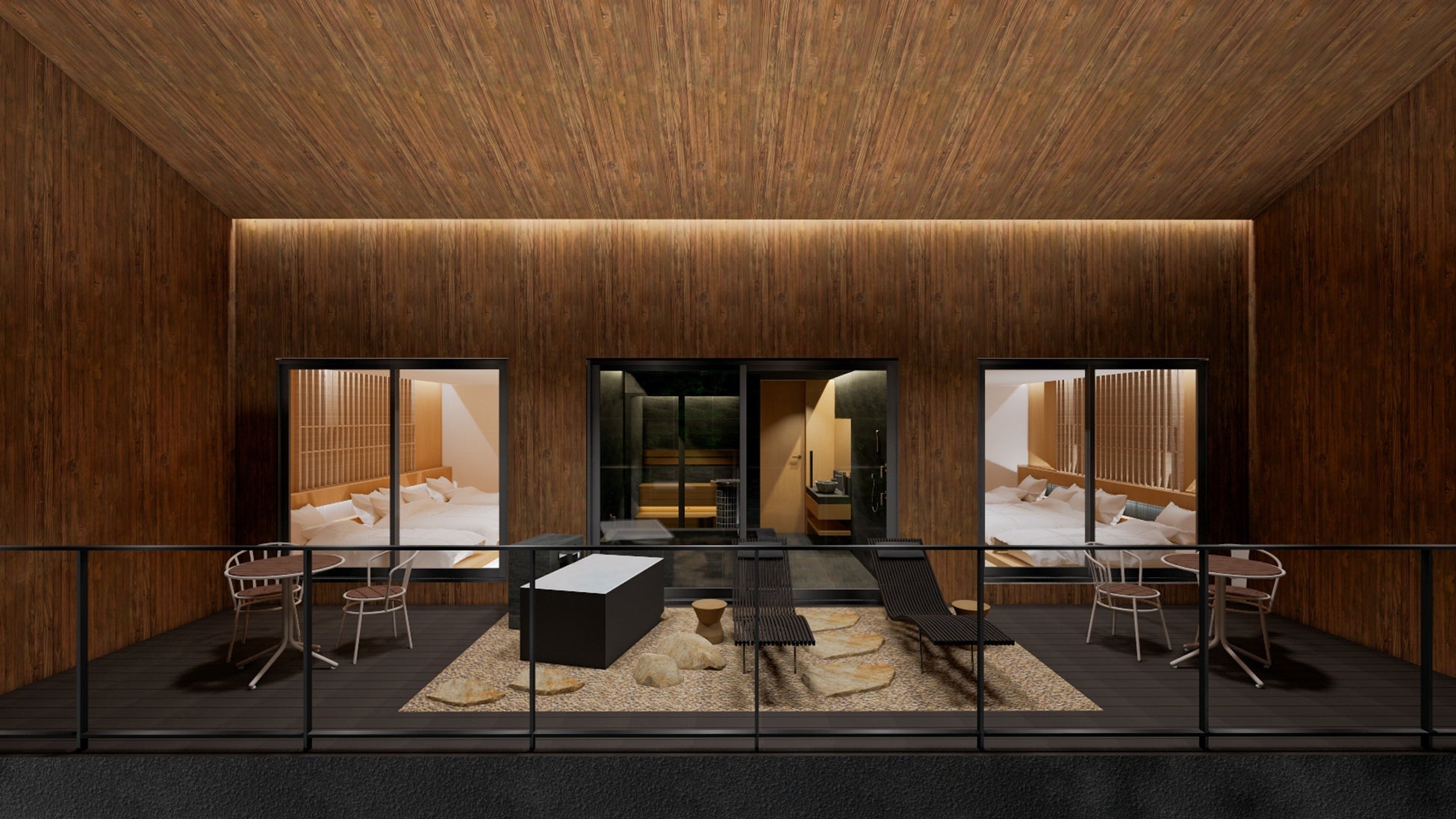 学生時代に出会った仲間たちが家族を持ち、大切な友人や子ども、両親を連れて気兼ねなく宿泊できる“ホテル”があまりなかったことがきっかけで、プライベートリゾートホテルを展開する会社を創設しました。SEIONでは皆で集まる憩いの空間はもちろんのこと、サウナや浴室、寝室などはプライベート性を重視した設計を取り入れています。例えば、憩いの場所から完全に独立したサウナや浴室などのリトリートスペースは、屋内に設置。トイレ・洗面・浴槽付きシャワールームをそれぞれの寝室に完備し、各寝室を空間的にも離すことで騒音なども最小限に設計されています。
