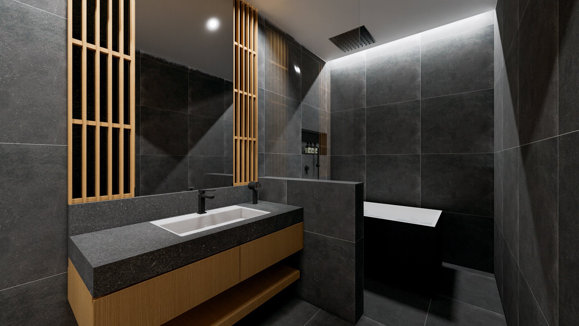 ゲストそれぞれがリラックスできるようこだわり抜いて設計したプライベート空間です。両親や友人を招いても気兼ねなく過ごせるよう、洗面、トイレ、シャワー室をそれぞれの空間に設置。寝室は隣接していないため、赤ちゃんの泣き声などの音漏れも最小限に。別の寝室にまた泊まりたくなる、雰囲気が全く異なる黒と白のコントラストデザインを採用しました。