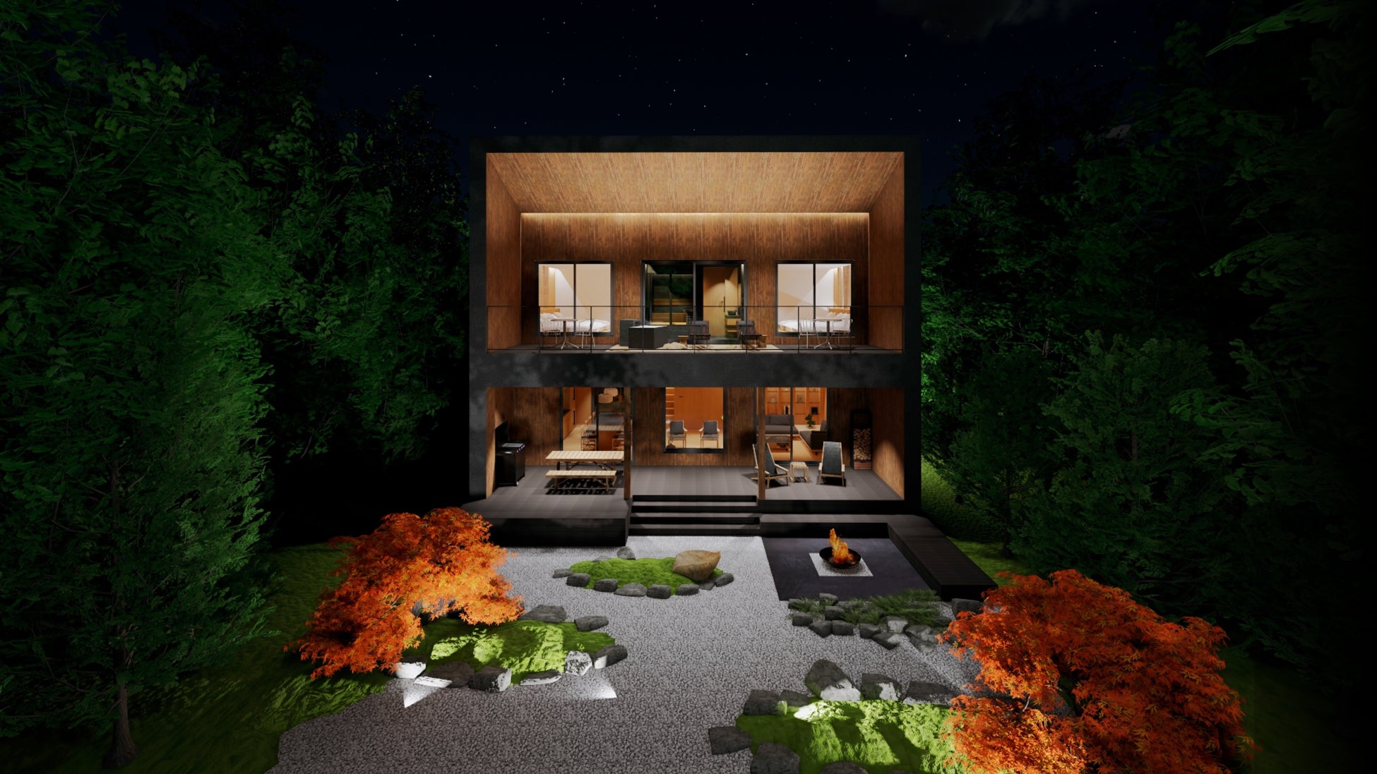 都心から車で90分。山中湖の森の中に、サウナや露天風呂を完備した和モダン建築が誕生