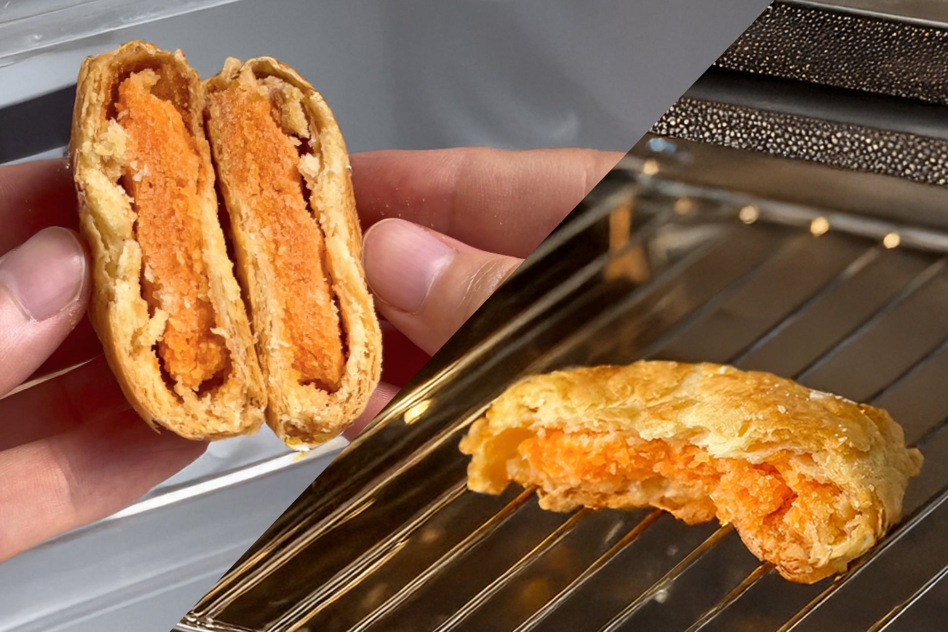 トースターで温めれば、焼きたてのようなサックサクのパイ生地に。