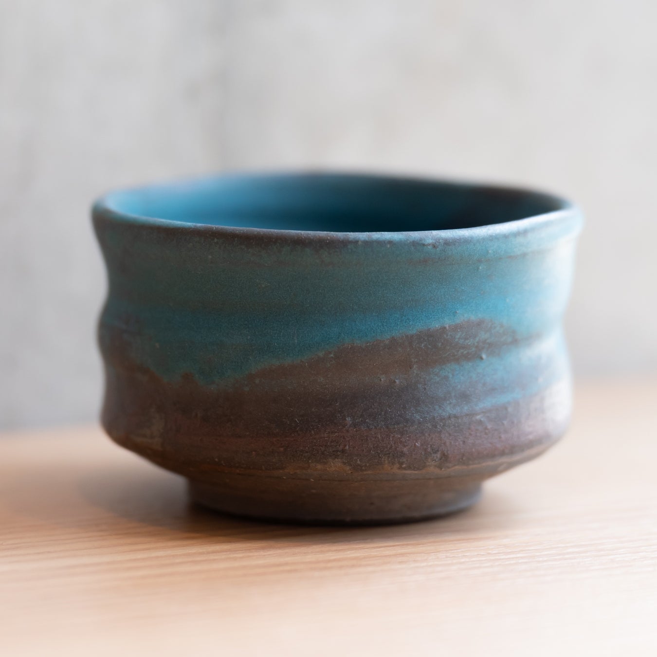 美濃焼の名窯・卯山窯(うざんがま)に特注製作を依頼したお茶碗で、希少な「トルコ釉」が贅沢に使われています。深く澄んだ青緑が特徴で透明感と深みのある美しい色合いが魅力です。