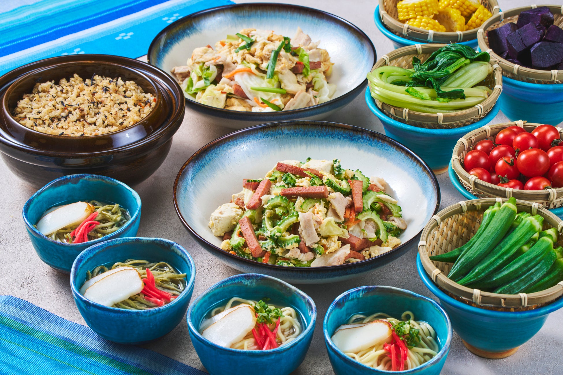 定番の沖縄そば、ゴーヤチャンプルーや麩チャンプルー、沖縄風炊き込みご飯“じゅーしー”など、郷土の味わいなど存分にご堪能いただけます。また、今回はカツオ出汁をベースにした「琉球粥」が新登場。あおさや青葱、白菜漬け、梅干し、ザーサイ、キムチなど、多彩なトッピングを多数ご用意しております。