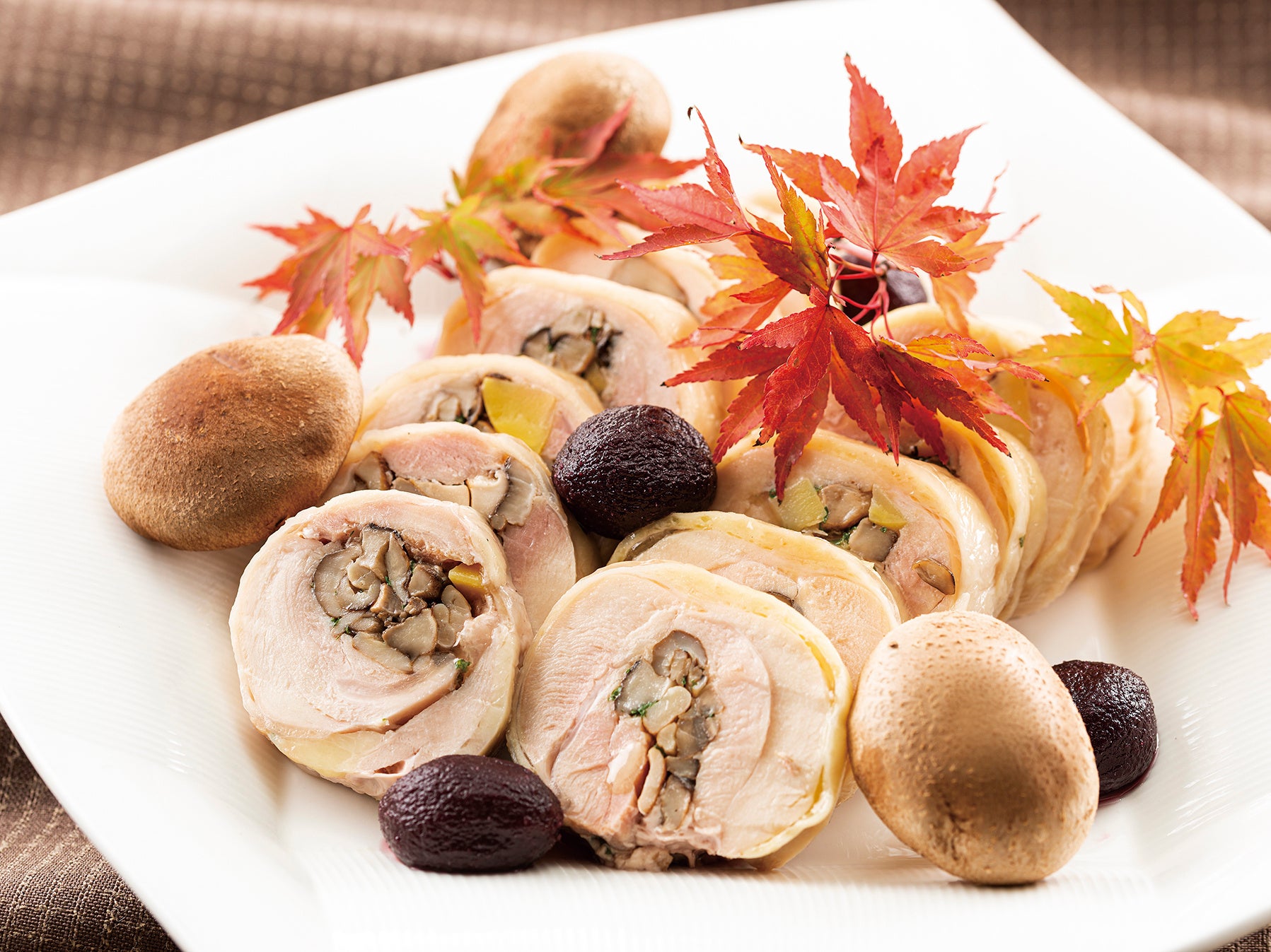 国産鶏モモ肉と秋の味覚のガランティーヌ