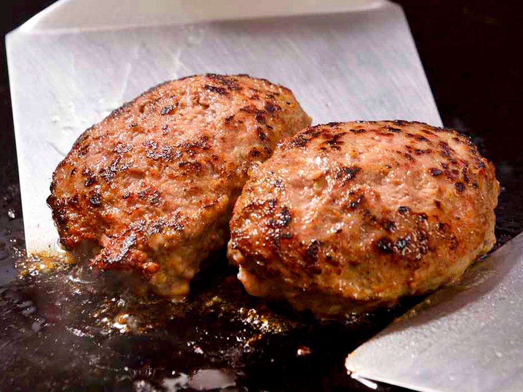 細かなサシと肉の味を引き出す赤身、甘みのある脂を粗挽きし、肉汁と風味を最大限引き出す割合で、つなぎを極力少なめに仕上げた贅沢なハンバーグ。
