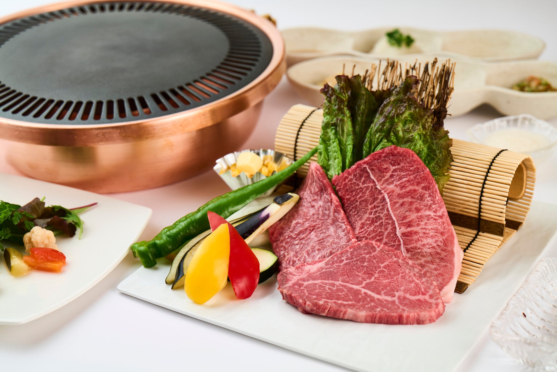 特撰A5和牛3種(ヒレ・ミスジ・ランプ)を、目の前の鉄板で焼きながら楽しむ“新しいしゃぶしゃぶ体験”。6種の特製ダレと国産夏野菜を添えて、自分好みの“焼き加減と味”を追求できる「体験するご馳走」です。