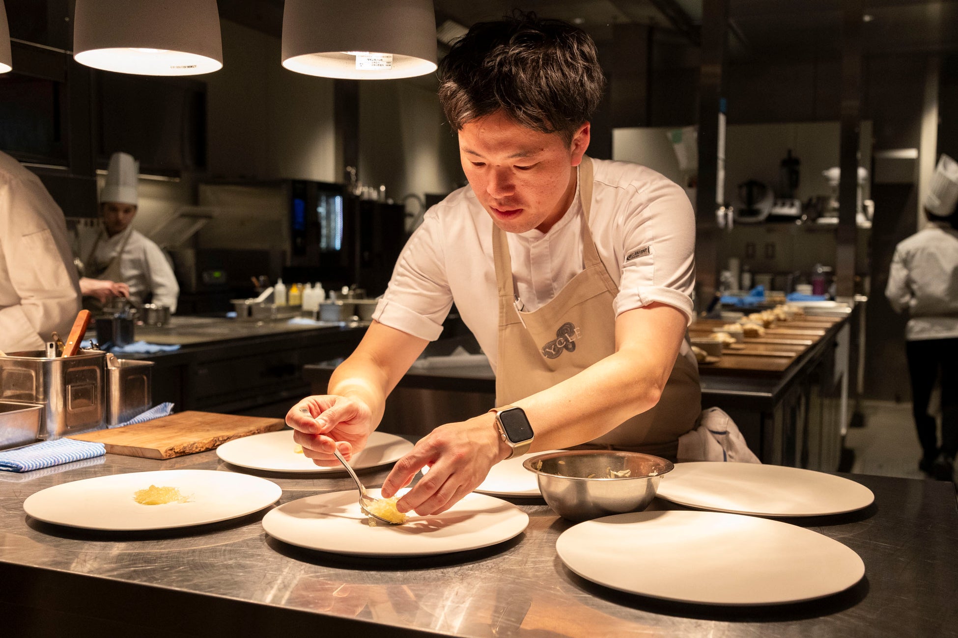 左)バンコク「Côte」Davide Garavagliaシェフ 右)大手町「CYCLE」宮本悠平シェフ