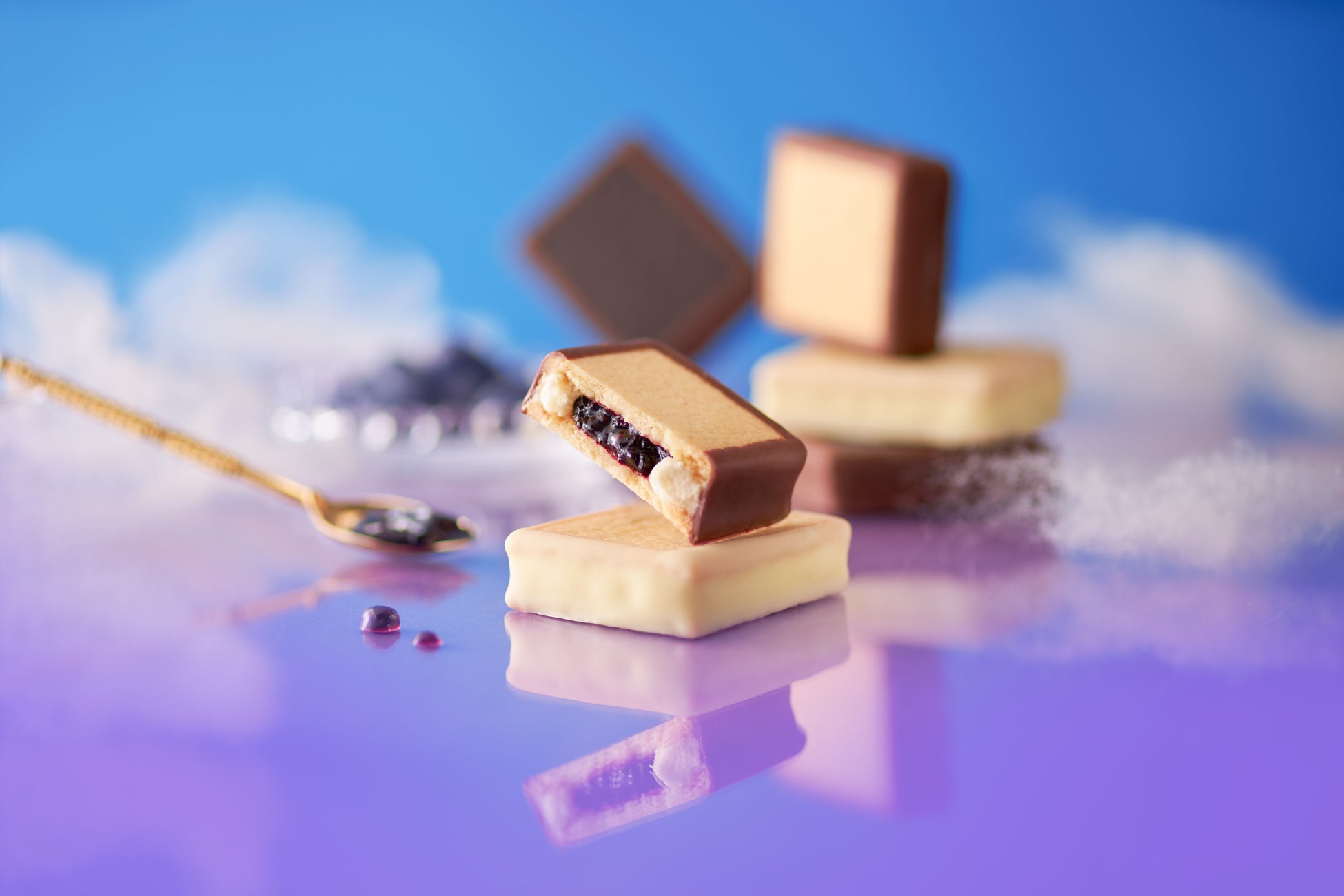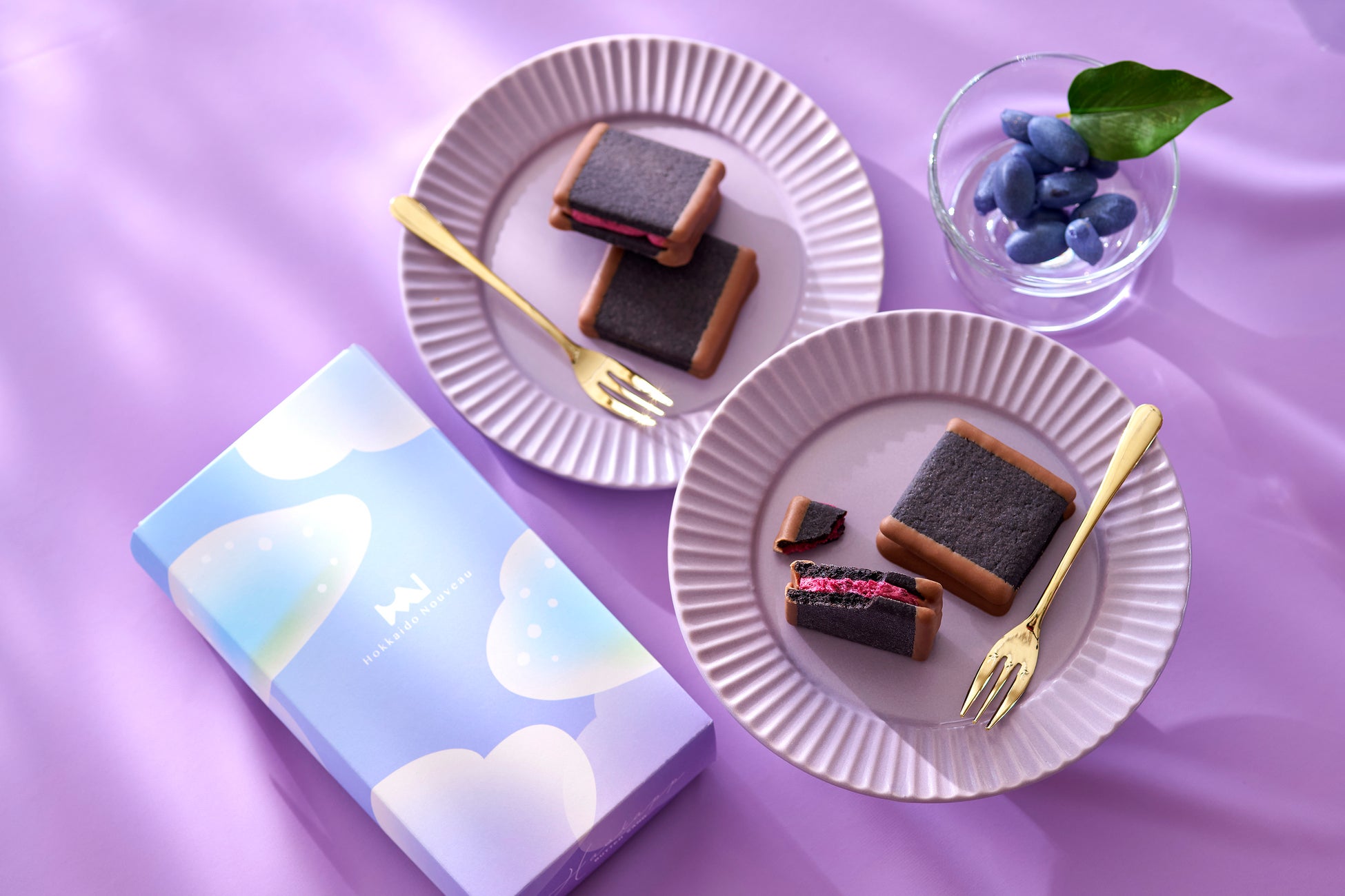 北海道産ハスカップのほどよい酸味が、北海道産バターのバタークリームと混ざり合い、なめらかな口どけに。ハスカップならではの鮮やかな紫色とクッキーとのコントラストをお楽しみいただけます。