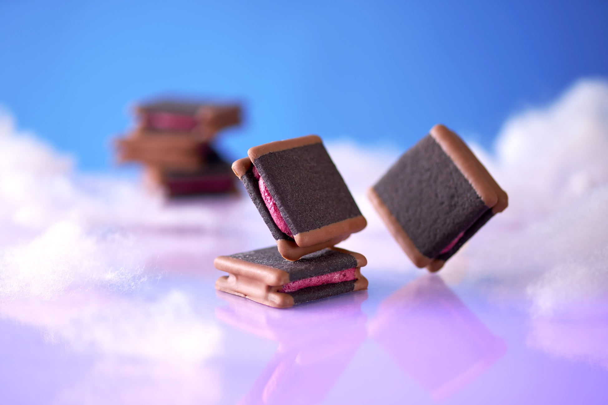 香ばしいビターな薄焼きクッキーで、北海道産ハスカップのジャムとバタークリームをブレンドしたオリジナルクリームをサンドしました。