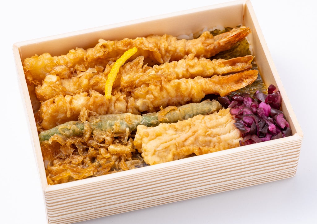 海苔ごはんの上に海老の天ぷらを贅沢に3本のせ、香ばしく揚げたいかやいんげんなどの天ぷらを合わせた、くるめし弁当でしか味わうことのできない天丼弁当です。秘伝のタレが具材とご飯をしっかりまとめ、リーズナブルながら満足感のある一品に仕上げました。