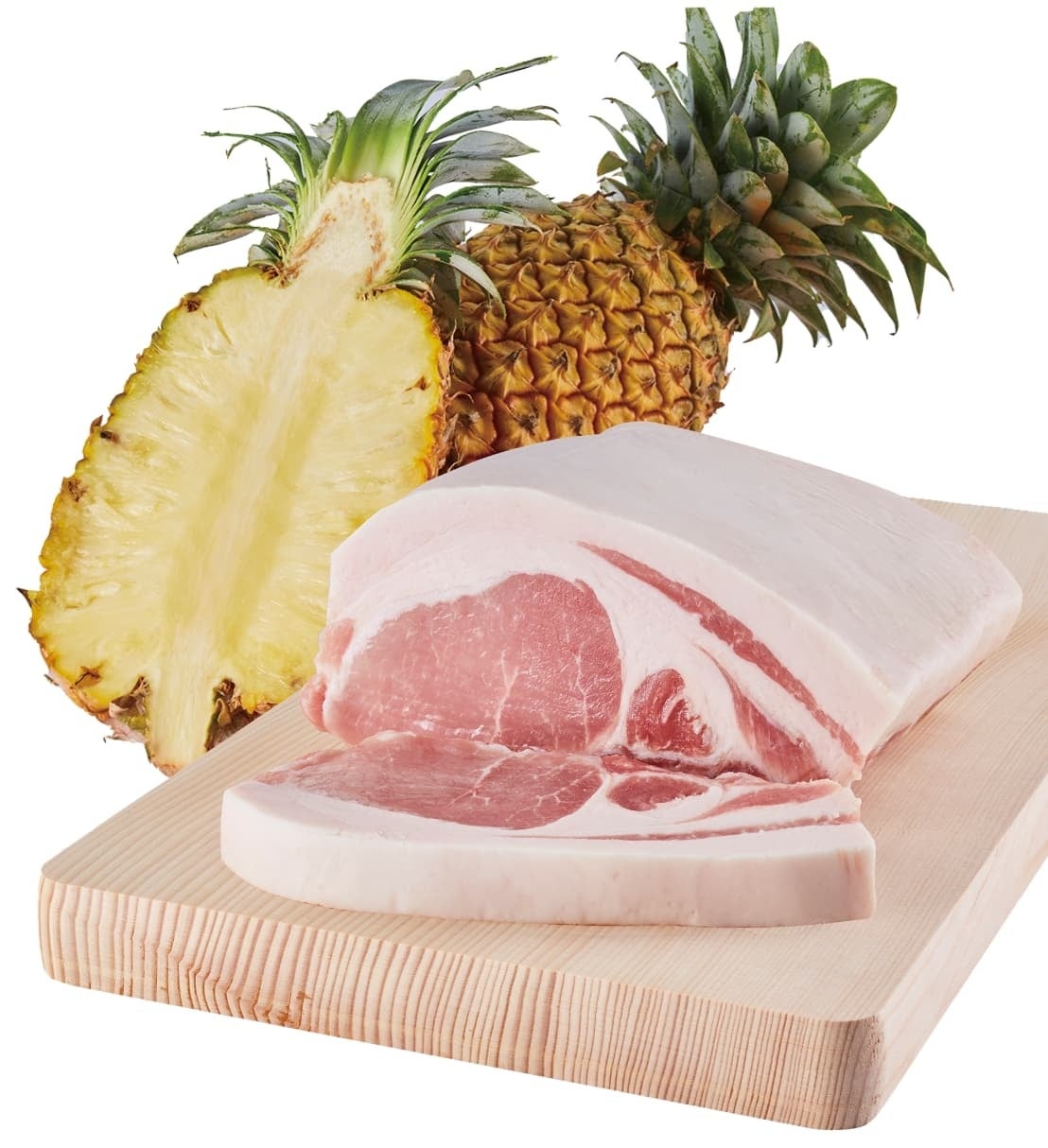 日本一のパイナップル生産量の村「東村」。その東村のパイナップルを与え、豊かな緑と美ら海に囲まれた環境で大切に愛情かけて育てられた「アグー豚 パイとん」。高級銘柄豚としてもしられるアグー豚の中でも「パイとん」は臭みが少なく、旨味と甘味が感じられる女性にも大人気のアグー豚です。